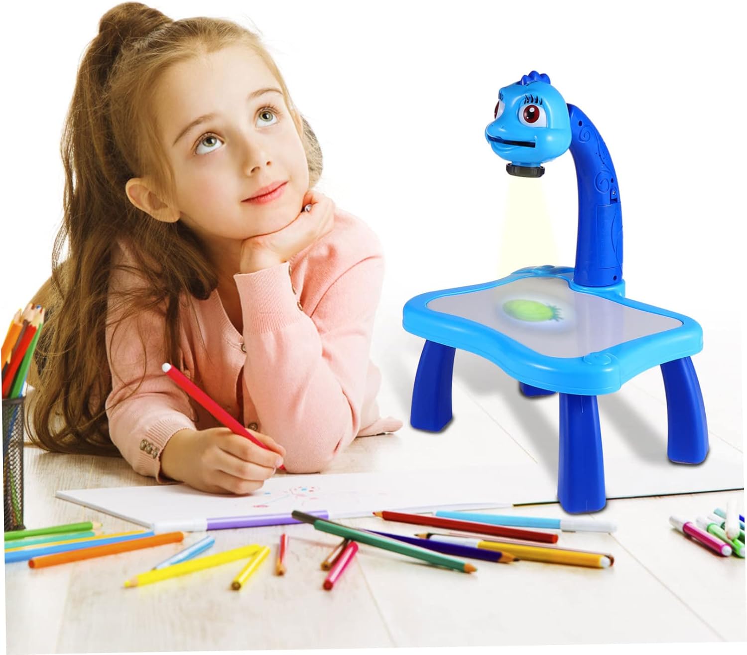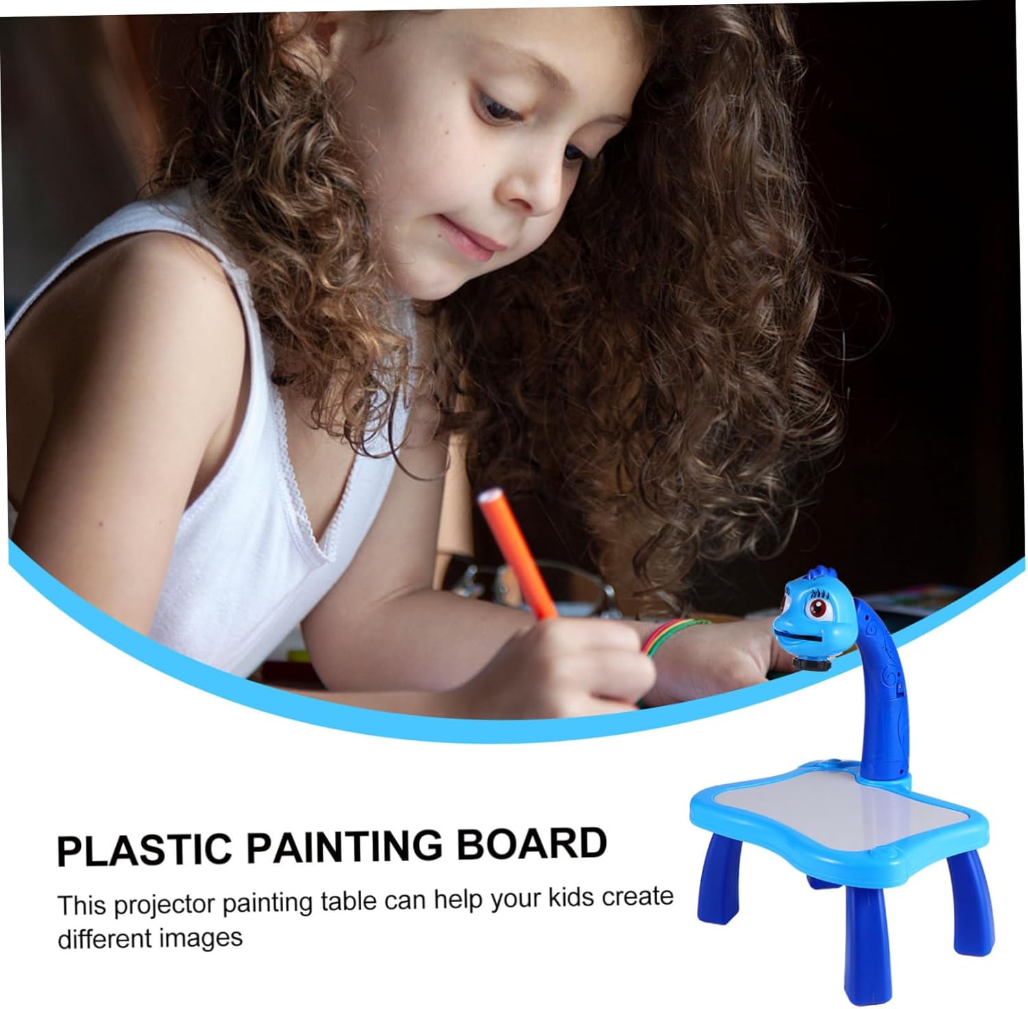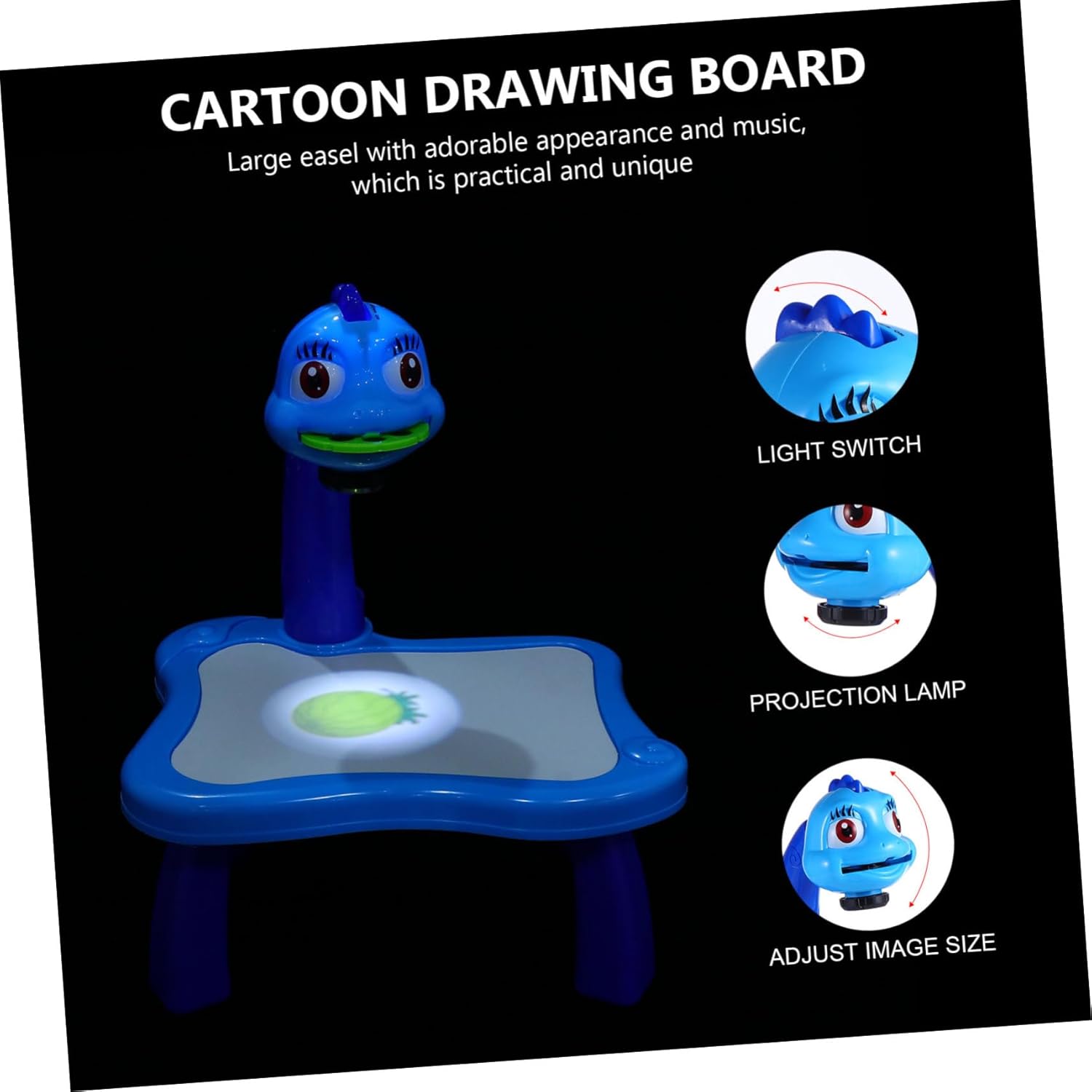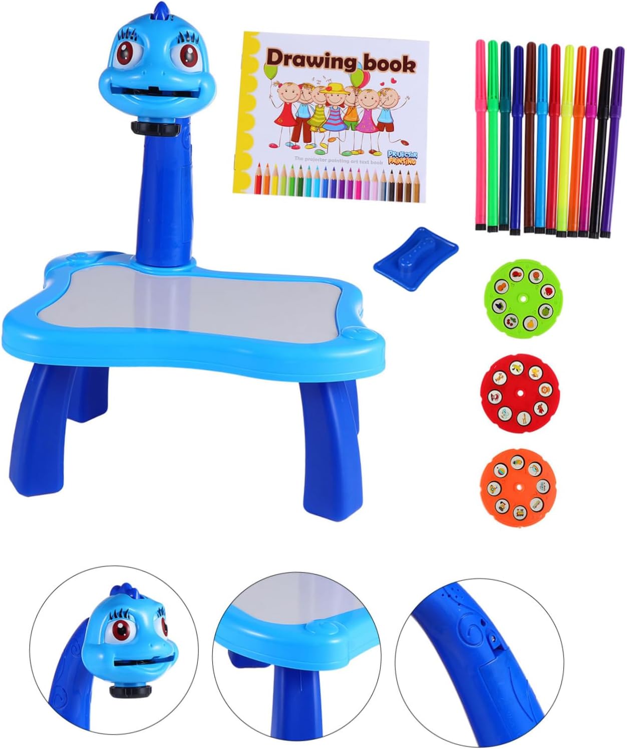Bellissimo proiettore per dipingere: questa scrivania per dipingere può aiutare i a imparare meglio mentre giocano, lavagna per scrivere creativa Scrivania di apprendimento interessante: questo tavolo da pittura con proiettore può aiutare i tuoi a creare immagini diverse, adorabile tavolo da disegno Tavolo da disegno per cartoni animati: il proiettore può essere ripiegato per essere riposto facilmente, il che è comodo e pratico tavolo da apprendimento Tavola da pittura in plastica: i possono dipingere secondo i modelli quando prendono il pennello, materiale didattico Adorabile giocattolo da disegno: cavalletto con aspetto adorabile e musica, pratico e unico, divertente strumento educativo