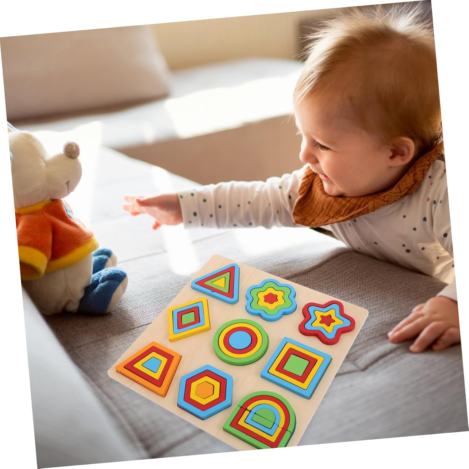 Divertimento con l'abbinamento delle forme: incoraggia ad apprendere e abbinare forme diverse, migliorando le loro capacità di riconoscimento delle forme, montessori, educazione precoce montessori Sicuro: realizzato con materiali sicuri, assicurando un'esperienza per i più piccoli, puzzle educativi, puzzle di istruzione precoce Stimola lo sviluppo cognitivo: incoraggia la crescita cognitiva stimolando il riconoscimento e l'abbinamento di forme e , puzzle in legno per la scuola, l'aula Incoraggia la pazienza: aiuta a sviluppare la pazienza e mentre lavorano per completare il puzzle, puzzle di forme montessoriane, puzzle di educazione precoce Supporta le capacità motorie fini: sviluppa le capacità motorie fini mentre e posiziona ogni pezzo del puzzle, puzzle prescolare, puzzle di abbinamento dei