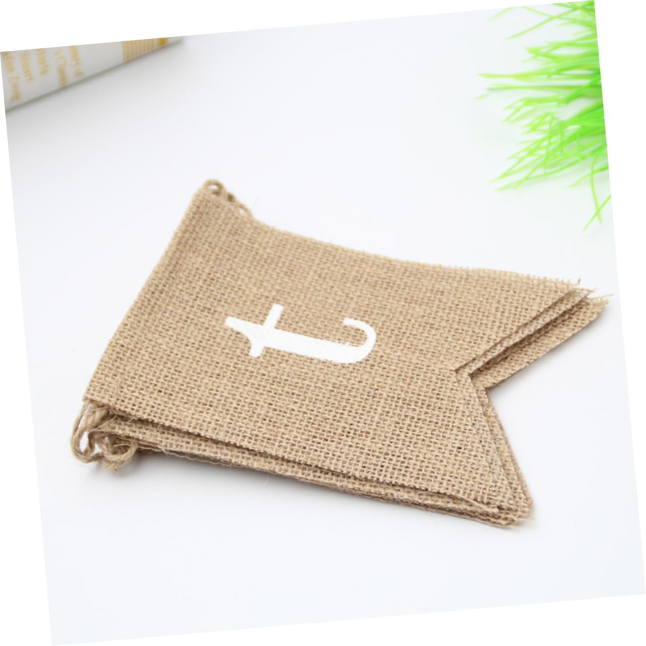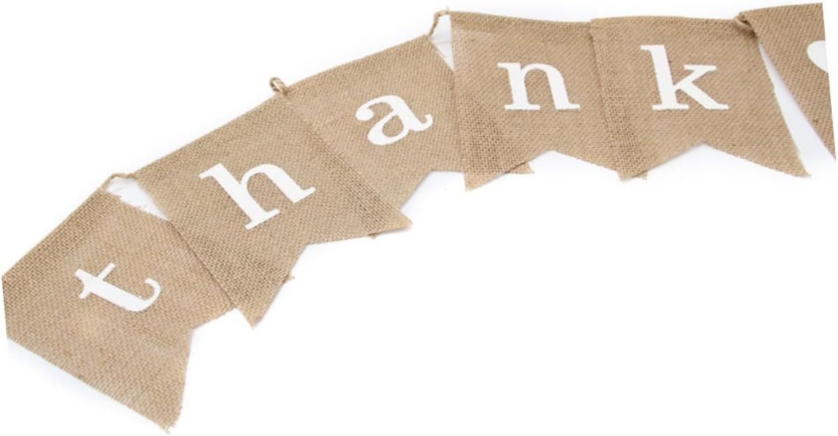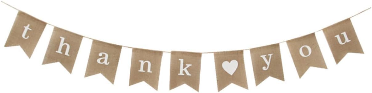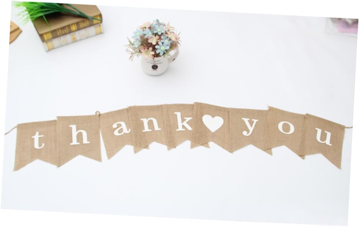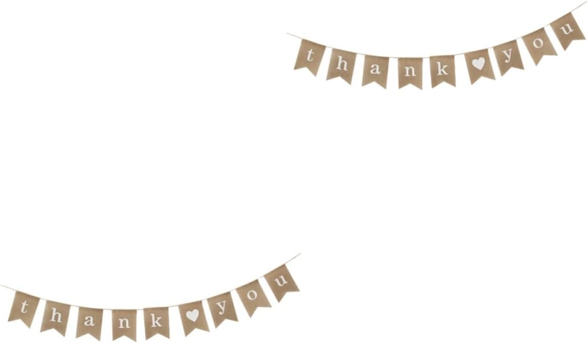 una decorazione per una festa di matrimonio, una decorazione per una festa per il baby shower, una decorazione per una festa di Natale e così via. Realizzato in tessuto di iuta naturale per un uso duraturo. Questa stamina di tela era stampata con la scritta "grazie" sul davanti e un cuore bianco, su ogni bandiera chiusa sopra. Ogni bandiera non è fissa, quindi la distanza tra ciascuna bandiera può essere regolata.