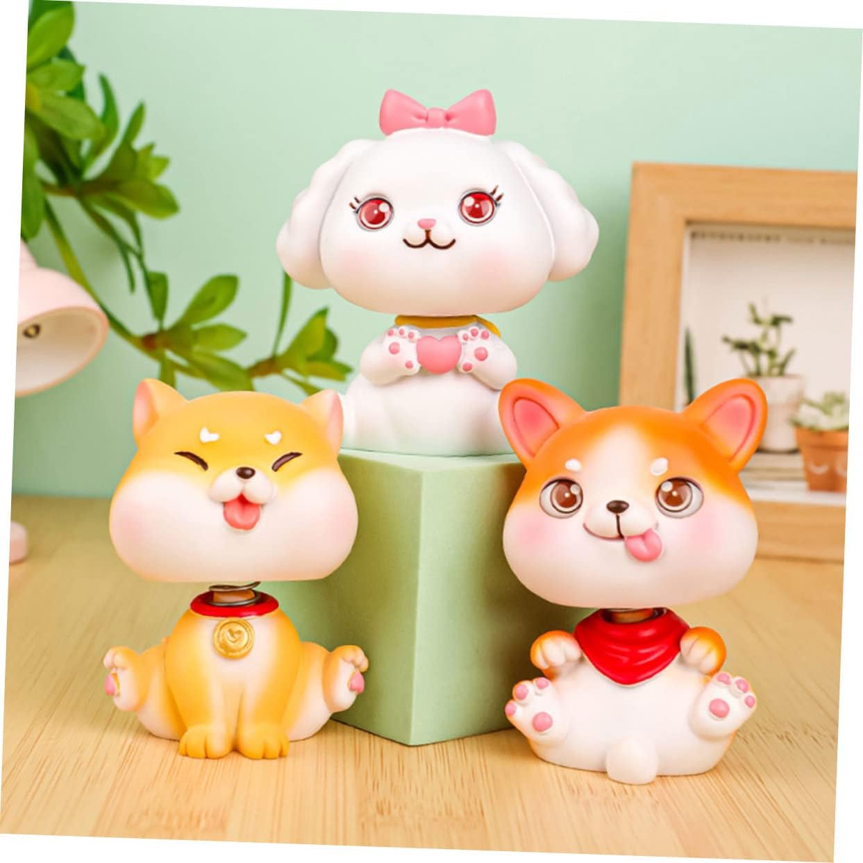 Figurine di animali: la statuetta del cane che scuote la testa può scuotere la testa durante la guida, molto cartoon e interessante. Ornamento per cruscotto dell'auto: la statuina del cane artigianale in resina è leggera e può essere facilmente posizionata nella tua auto come decorazione. Statue di cani che scuotono la testa: realizzate in materiale di resina di alta qualità, l'arredamento della statuetta del cane è forte e non facile da rompere o deformare. Cruscotto feng shui: viene fornito con un design creativo di modellazione del cane, che conferisce più vigore all'arredamento della tua auto. Ornamenti per cani: la statuina del cane cartoni animati può essere utilizzata per l'arredamento della scrivania o per la decorazione dell'auto, molto versatile.