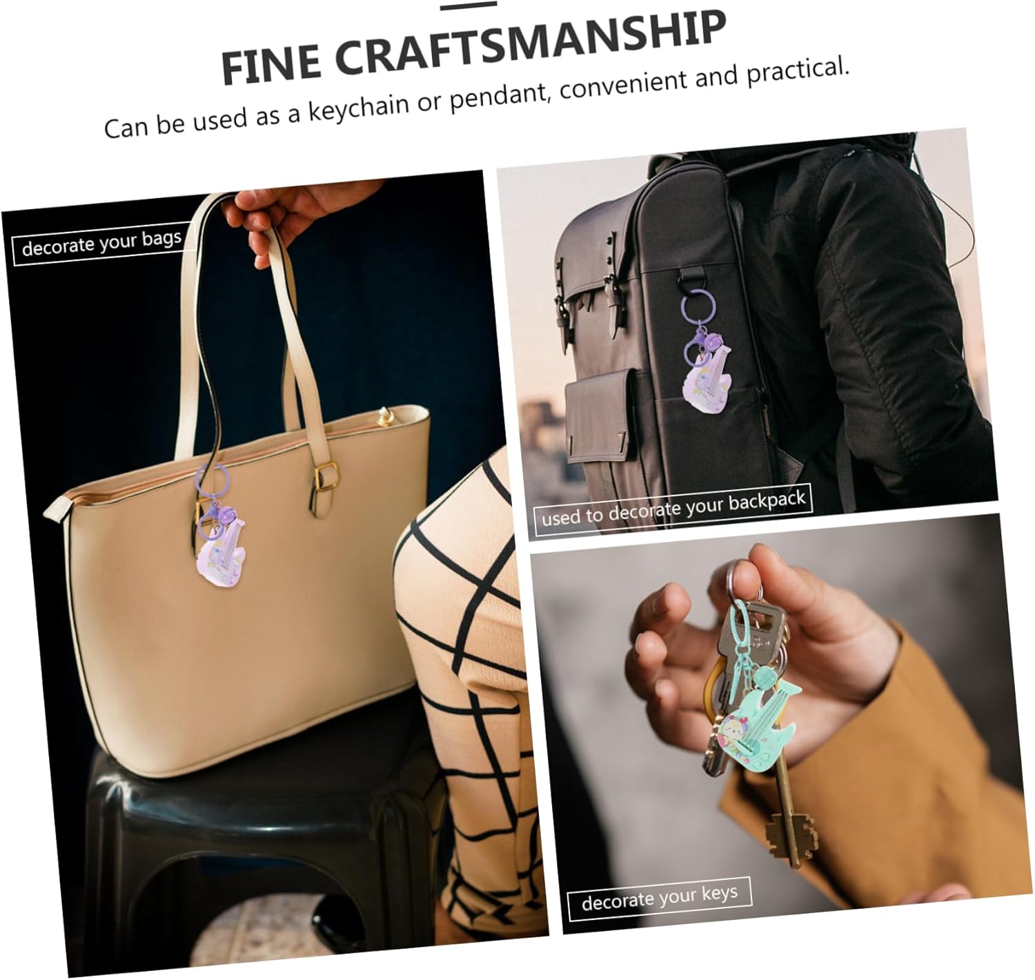 Accessori portachiavi-- costruiti per durare: realizzato in materiale, questo ciondolo portachiavi vanta un aspetto lucido e raffinato che è costruito per durare, piccolo portachiavi per chitarra Piccolo portachiavi per chitarra-- decorativo e raffinato: questo squisito ciondolo portachiavi, progettato a forma di chitarra, aggiunge un tocco sofisticato a qualsiasi borsa, portachiavi per l'arredamento della borsa Mini portachiavi per chitarra: compatto e leggero: questo portachiavi è facile da trasportare e ti consente di mostrare la tua personalità unica senza sforzo, ciondolo portachiavi Decorazione da appendere alla chitarra: affascinante ed elegante: questo ciondolo portachiavi affascinante e dal design intricato aggiunge un tocco di a qualsiasi borsa, rendendolo un accessorio adatto per coloro che apprezzano i dettagli raffinati, il piccolo portachiavi per chitarra Decorazione portachiavi per feste: buona scelta: una scelta ideale, questo ciondolo portachiavi combina praticità e valore sentimentale, rendendolo un premuroso per ogni occasione, elegante portachiavi musicale