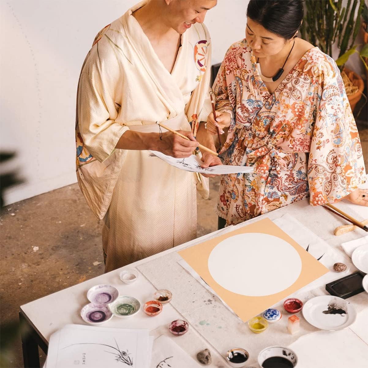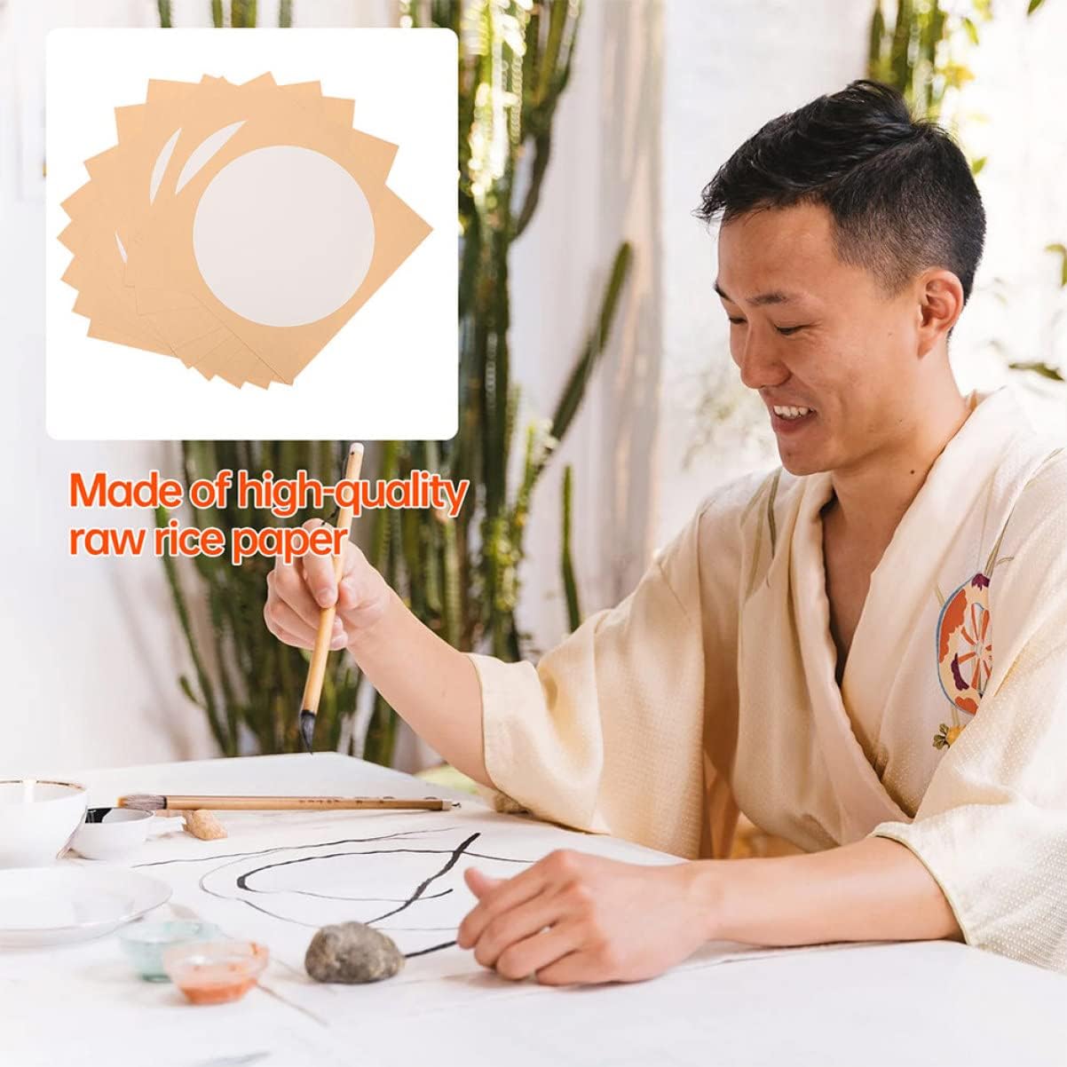 Carta xuan rotonda carta di riso cinese shikishi-- carta shikishi morbida premontata- offerta appositamente per la scrittura con inchiostro a pennello cinese o la scrittura kanji sumi. Xuan cinese: adatto per la calligrafia cinese o il disegno, la pittura, la pratica e altro ancora. Carta xuan per pittura calligrafica: ottima per la scrittura corsiva, la pittura cinese e altre creazioni artistiche. buon regalo per gli amanti della calligrafia. Forniture per creazioni in carta: il materiale è buono e la lavorazione è buona, per un eccellente senso di utilizzo. carta per calligrafia Carta lettere cinese: design compatto e piccolo, facile riporre, non occupa spazio.