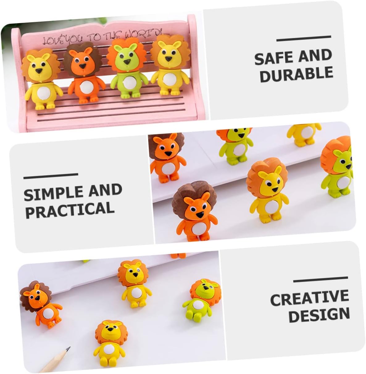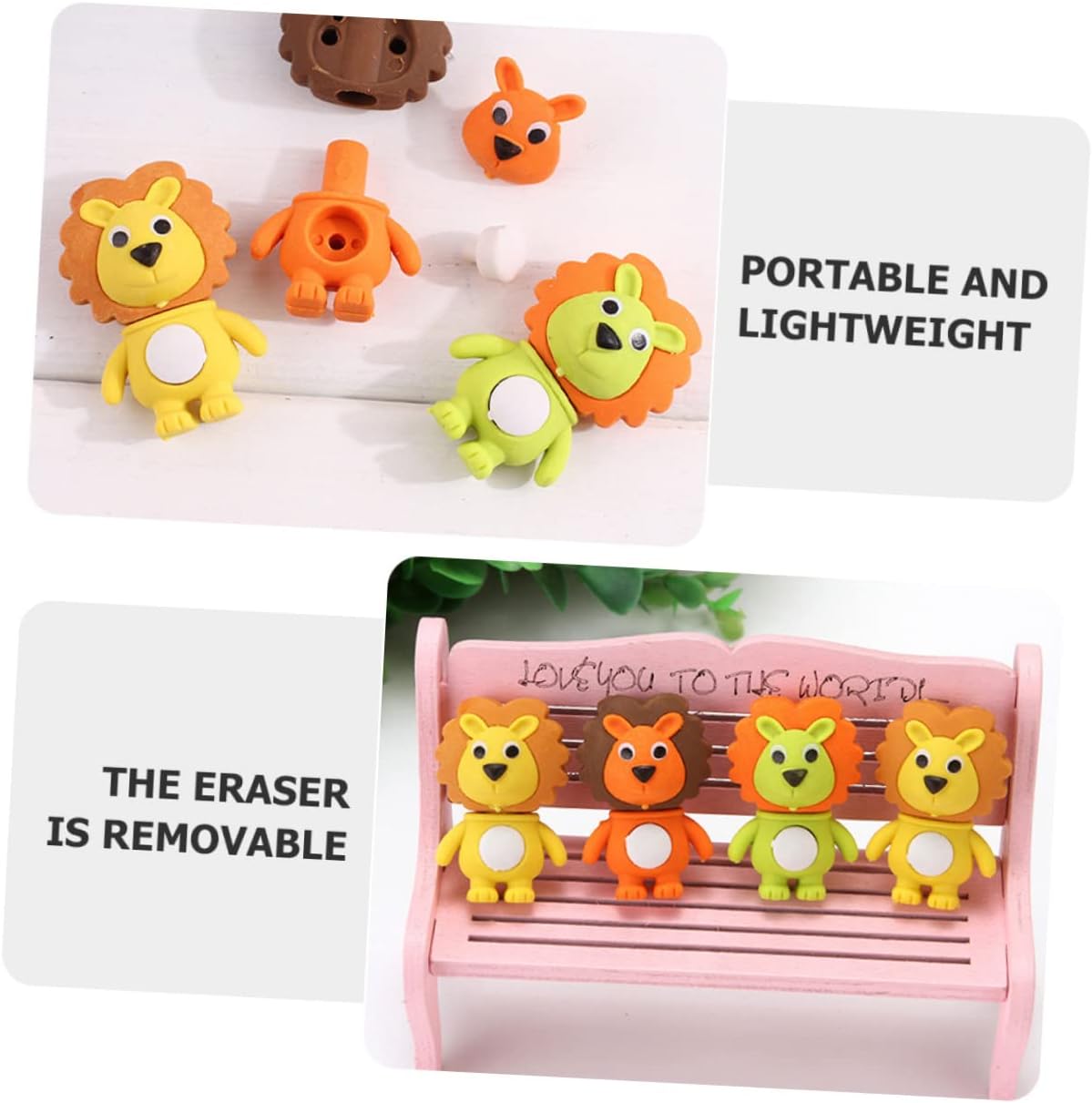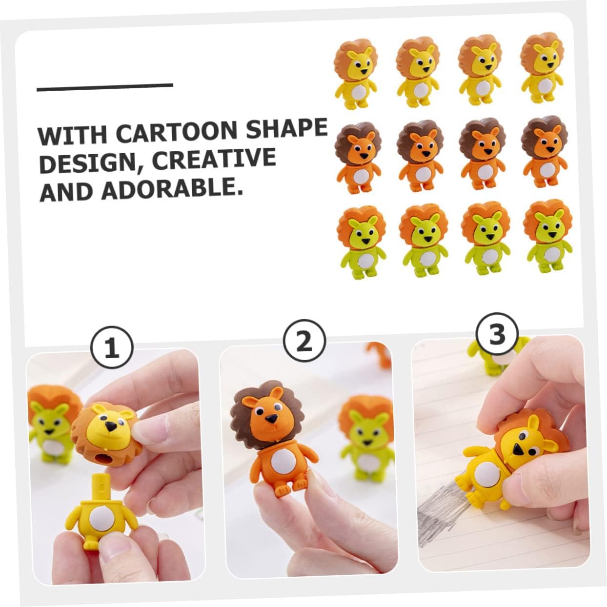 Gomme da cancellare per : queste simpatiche gomme per possono essere utilizzate per casa, ufficio e scuola, e possono essere usate come premi in classe, decorazioni per feste, riempitivi per sacchetti , riempitivi per uova di pasqua, gomme interessanti e molto altro ancora Gomme da cancellare a forma di cartone animato: questo prodotto svolge efficacemente il ruolo di una gomma e può cancellare la scrittura a mano che scrivi con una matita, adorabili gomme a forma di Gomma animali: consistenza morbida, facile da pulire, può essere strofinata ripetutamente, meno detriti, quantità sufficiente per soddisfare le tue esigenze di quantità, gomme carine per Gomme da cancellare a forma di : questa gomma da cancellare a forma di è di piccole dimensioni, leggera, non occupa molto spazio ed è facile da trasportare, gomme puzzolenti Premi per studenti: questa gomma a forma di è molto adatta come gomma o decorazione in classe o in ufficio, gomme divertenti per studenti all'ingrosso