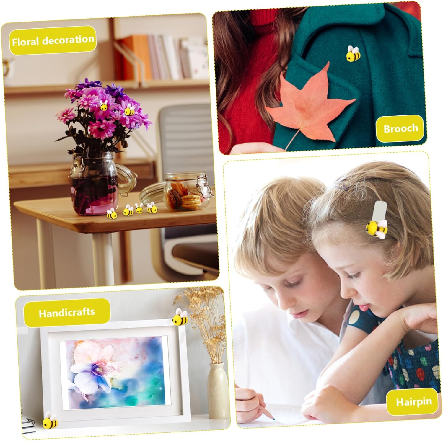 Adorabile e squisito: progettato a forma di adorabile con soffice di colore giallo e nero, ed elegante, sembra adorabile e attraente, api artigianali per la decorazione, mini api decorative in Decorazioni perfette: le piccole api sono perfette per decorare costumi da , vestiti, decorazioni per la cameretta dei o per la doccia, feste a tema, ecc., lavoretti con le api, piccoli lavoretti con le api Ampiamente utilizzato: perfetto per decorazioni fai da te di spille, fasce per capelli, forcine, progetti di scrapbooking e altri lavori artigianali, api artigianali, api in Facile da usare: molto comodo per decorare, puoi usare un ago, un filo o la colla per attaccarlo ad altri oggetti per realizzare vari lavoretti artigianali a tuo piacimento, decorazioni a forma di , mini palline artigianali in di Ampio utilizzo: perfetto per lavori fai da te, decorazioni per alberi di natale, gioielli, accessori fai da te, ghirlande e fai da te e molto altro, decorazioni a forma di in , decorazioni artigianali a forma di