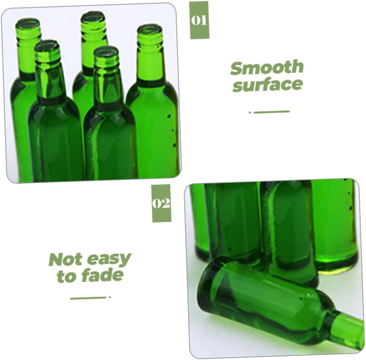 Giocattoli in miniatura della casa delle bambole: materiale in resina e lavorazione dettagliata, le bottiglie di birra in miniatura sono sicure, supportano un lungo periodo di utilizzo. Bottiglie di birra per case delle bambole: dimensioni compatte, facili da usare, coltiva l'abilità pratica dei tuoi bambini decorando da soli la loro piccola casa. Piccole bottiglie: le decorazioni delle bottiglie in miniatura possono essere utilizzate con altri mini ornamenti per la casa per avere un migliore effetto decorativo. Decorazione della casa delle bambole: design in miniatura, colori squisiti, possono dare sensazioni diverse alle case delle bambole e alle decorazioni di micro scene, specialmente nella scena della cucina o del soggiorno. Giocattoli per bottiglie: realizzate con materiali in resina, queste mini bottiglie di birra hanno un alto grado di simulazione, ottime per la decorazione della casa delle bambole.