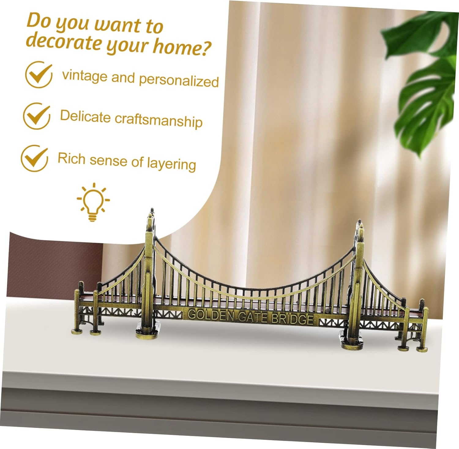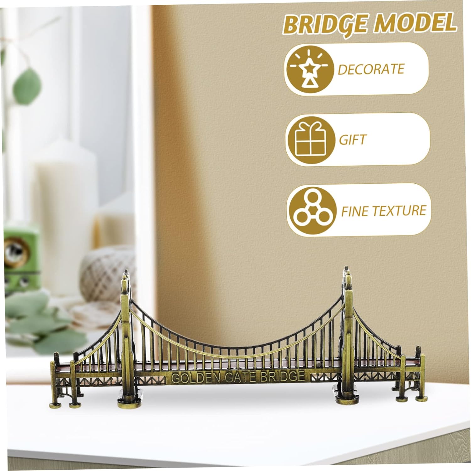 Souvenir della california: ottimo materiale: metallo golden gate bridge in rame modello 3d in metallo realizzato con materiali sani e rispettosi dell'ambiente, non preoccuparti di danneggiare la tua salute. Decorazioni natalizie vintage: il modello a ponte più lussuoso nel tuo luogo di decorazione, decorazioni natalizie, regali di festa per la amata. Giocattoli viaggio: giocattolo per costruire ponti per bambini: pregevole fattura e aspetto squisito, la sua popolarità e praticità. Accessori usa: realizzati con lavorazione retrò, la superficie è più attraente dopo la lavorazione artigianale. Giocattoli scrivania: il modello a ponte è perfetto per la decorazione della casa e dell'ufficio. adatto per feste, compleanni, anniversari, decorazione di eventi aziendali e altro ancora.