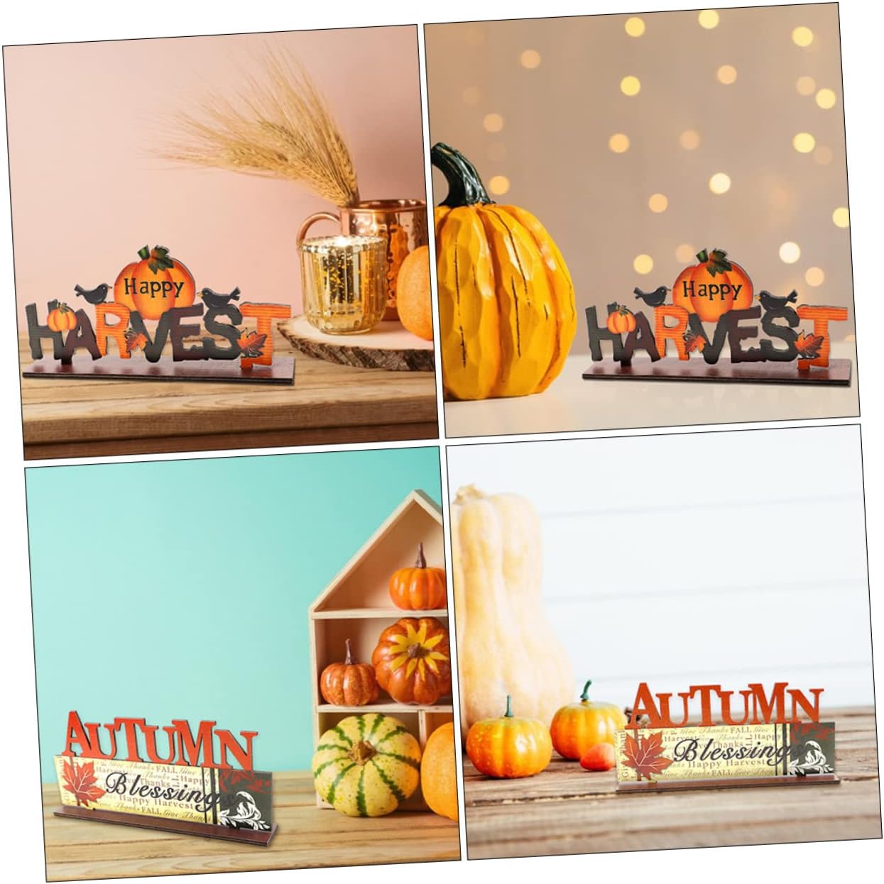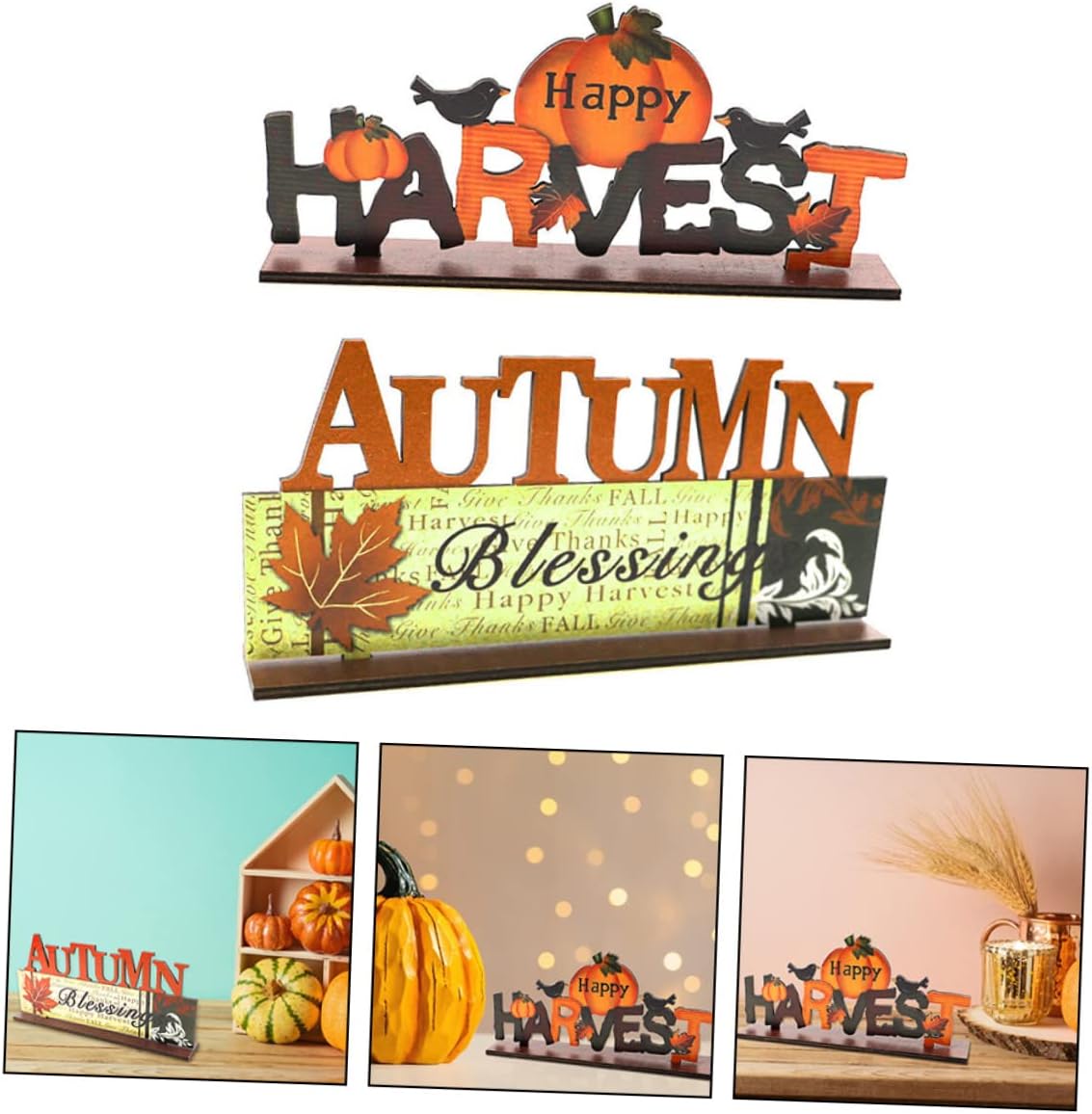 Cartelli tavolo con zucca, decorazioni tavolo: realizzate con materiale in legno sicuro e decorativo. Decorazione di zucca in legno: realizzata con materiale di legno di qualità superiore, durevole e robusto. Cartello in legno del raccolto: questa decorazione è realizzata con materiali durevoli, con un aspetto realistico e . Segni di caduta in legno: questa decorazione è realizzata con materiali, con un aspetto e . Decorazione cava in legno: può essere utilizzata ovunque. non importa all'interno o all'esterno, puoi usarlo per decorare.