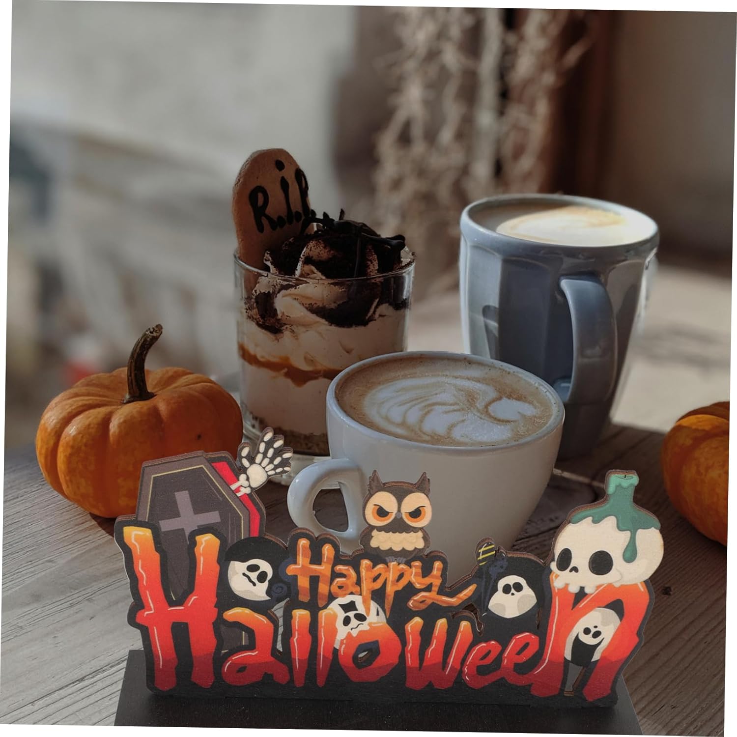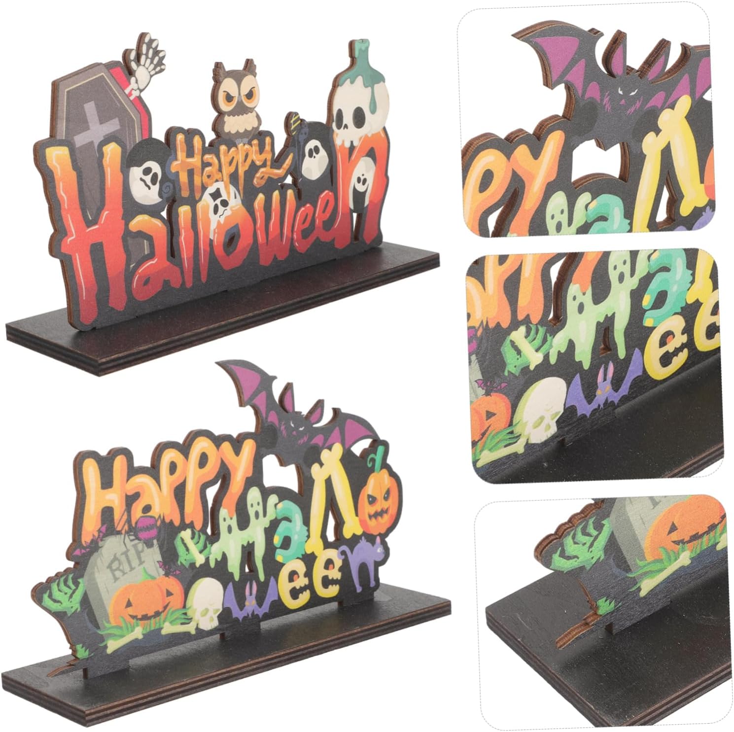Decorazione di halloween: questo centrotavola di halloween adotta materiale in legno, non sarà facile deformarsi o rompersi, sicuro per un uso prolungato. Ornamento per il desktop di halloween: un fantastico oggetto fotografico di halloween, puoi usarlo per scattare alcune foto creative per lasciare un ricordo indimenticabile. Centrotavola: invia questo lavoretto di halloween come regalo ai tuoi amici e familiari e saranno molto felici. Ornamento decorativo di halloween: liscio e delicato senza ferire le , puoi portare la decorazione del centrotavola in qualsiasi posto tu voglia. Decorazioni per la tavola centrotavola: elementi di halloween, possono essere un'opzione regalo perfetta per i tuoi amici. anche meraviglioso supporto fotografico per fotografi creativi.