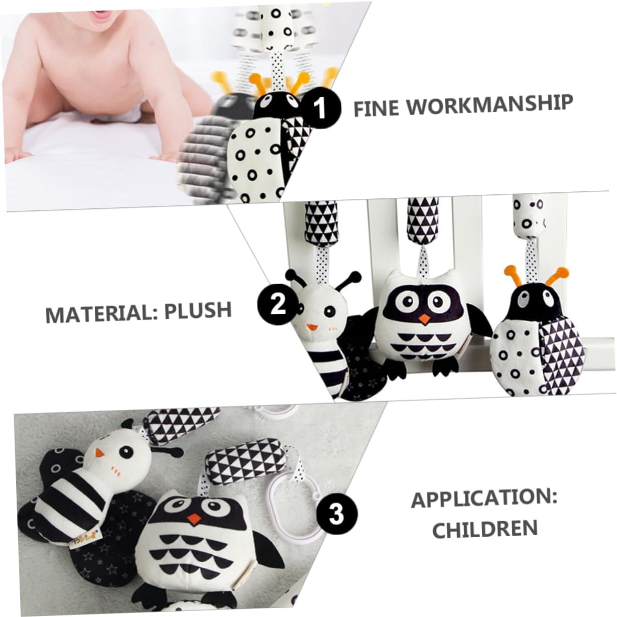 - i ganci ad anello con clip a c sono facili da appendere, che tratti di un passeggino, di un seggiolino per auto, di un lettino o di una culla. Ciondolo per carrozzina: può aiutare a promuovere il rapido sviluppo del nervoso visivo e del cervello e migliorare l'intelligenza del . Giocattoli per bambini appena nati: questo ciondolo a sonagli può divertire il a giocare, allenare l'udito del e attirare l'attenzione del . Giocattoli per giocattoli animali: questo ciondolo per culla può esercitare la capacità di presa del . Giocattolo per bambini: puoi facilmente questo pratico e adorabile ciondolo per culla a un .