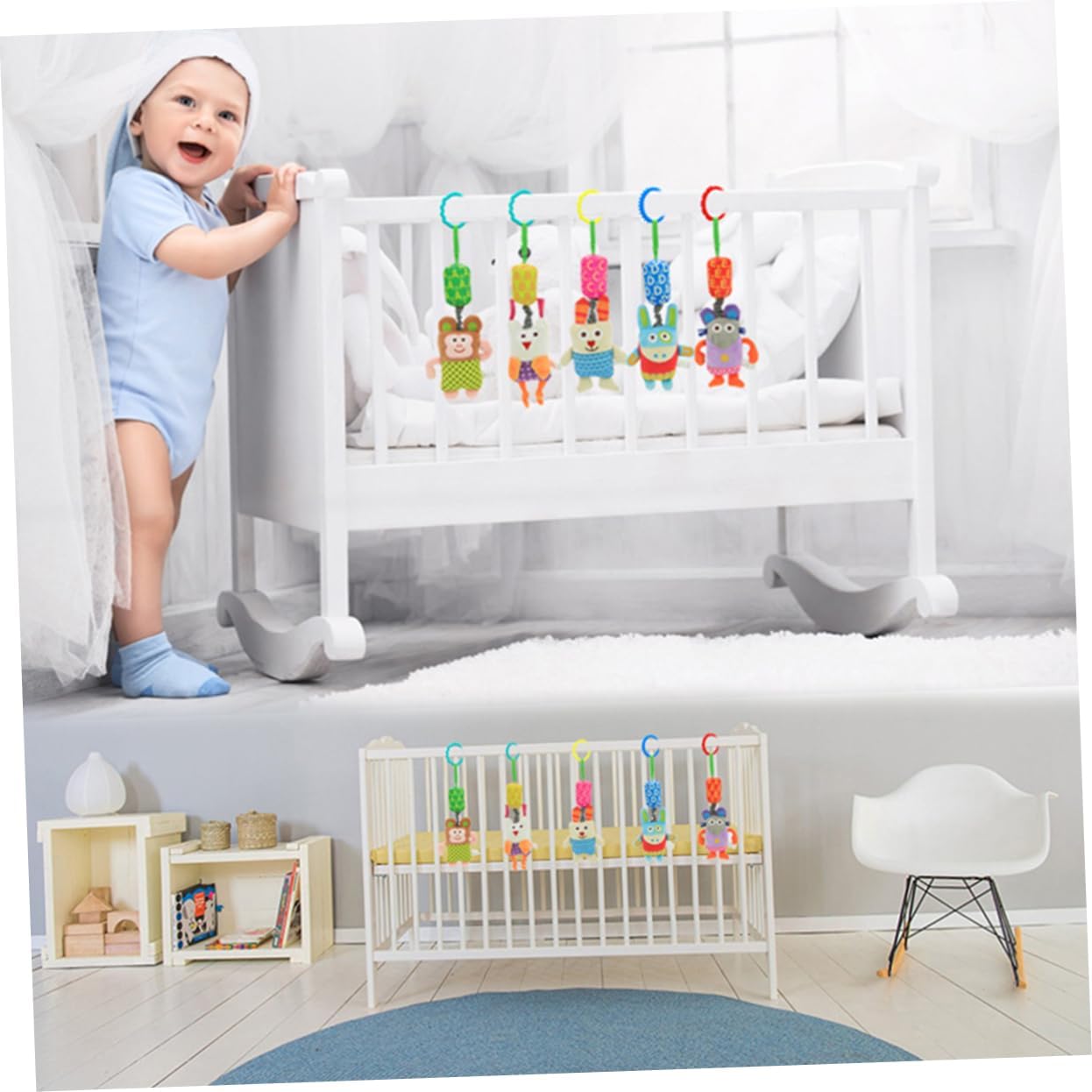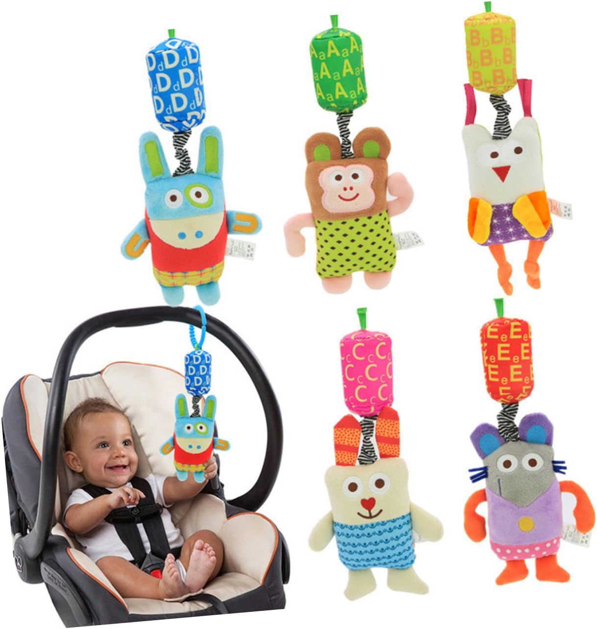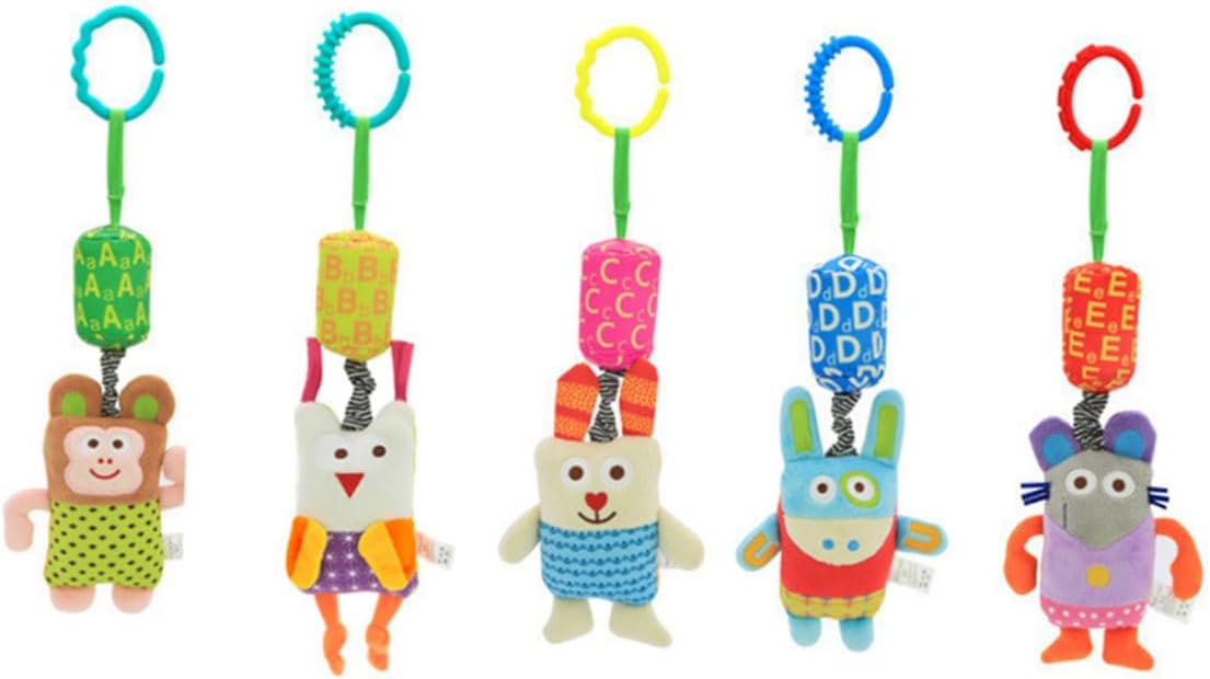 Campanelli da comodino per neonati: sviluppa i tattili del bambino e la coordinazione delle e degli occhi in modo naturale. Giocattolo con sonaglino per bambini: i personaggi appesi incoraggiano il bambino a raggiungere, tirare e spremere. Giocattolo da letto: giocattolo perfetto per il seggiolino auto, il marsupio o la culla. Giocattoli cartoni animati: per un tocco confortevole senza danni.