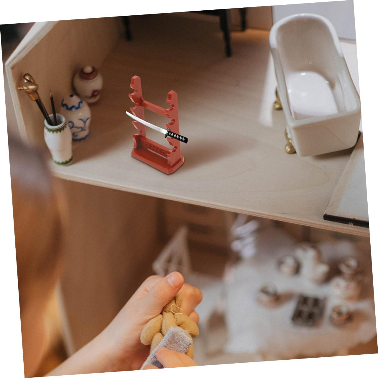 Vetrina versatile: ideale per esporre piccoli modelli di spade, action figure e altri oggetti da collezione in miniatura, migliorando la presentazione generale della tua collezione, porta bacchette, porta decorativo Costruzione: realizzata con materiali pratici e lavorazione artigianale di alta qualità per un supporto per decorativo e raffinato, organizzatori per da scrivania Stabile e: presenta una struttura stabile che garantisce un uso duraturo, fornendo un'opzione di visualizzazione affidabile per le tue miniature, mini rack per spade, supporto per spade Divertimento educativo: combina divertimento e apprendimento migliorando la destrezza manuale e il pensiero logico durante l'assemblaggio, porta da tavolo, supporto porta Espositore multiuso: ideale per esporre spade in miniatura, action figure e altri oggetti da collezione, aggiungendo un tocco di stile alla tua collezione, mini espositore per spade, organizer per spade