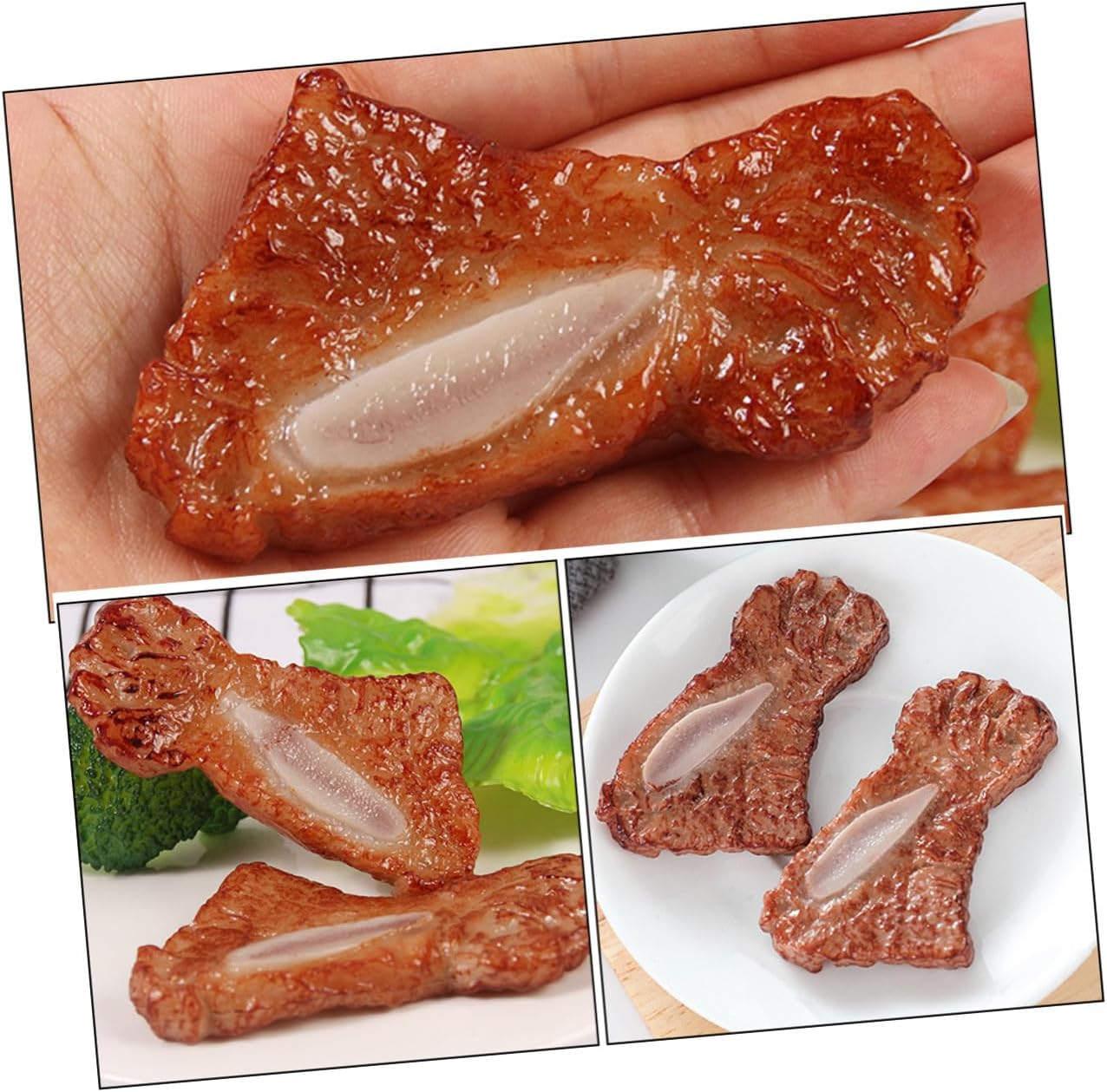 Cibo finto realistico: la finta costoletta di carne può essere esposta su un piatto, un tavolo, un vassoio di vetro, una ciotola per torte per la pubblicità e l'esposizione, mini di carne realistico Cibo simulato: con il design a forma di deliziosa carne, potrebbe aggiungere un tocco di stile inaspettato alla tua casa, ornamento di carne Accessori per alimenti artificiali: questo di costolette di bistecca finte è realizzato in materiale pvc, è sicuro da usare e può essere applicato ripetutamente, modelli di carne artificiale Carne finta: decorazione di carne artificiale e attraente per la cucina, la tavola e altre occasioni, da esposizione finto Bistecca simulata: aspetto realistico, ricca disposizione dei colori, costolette di carne finte molto adatte per l'esposizione, costolette realistiche