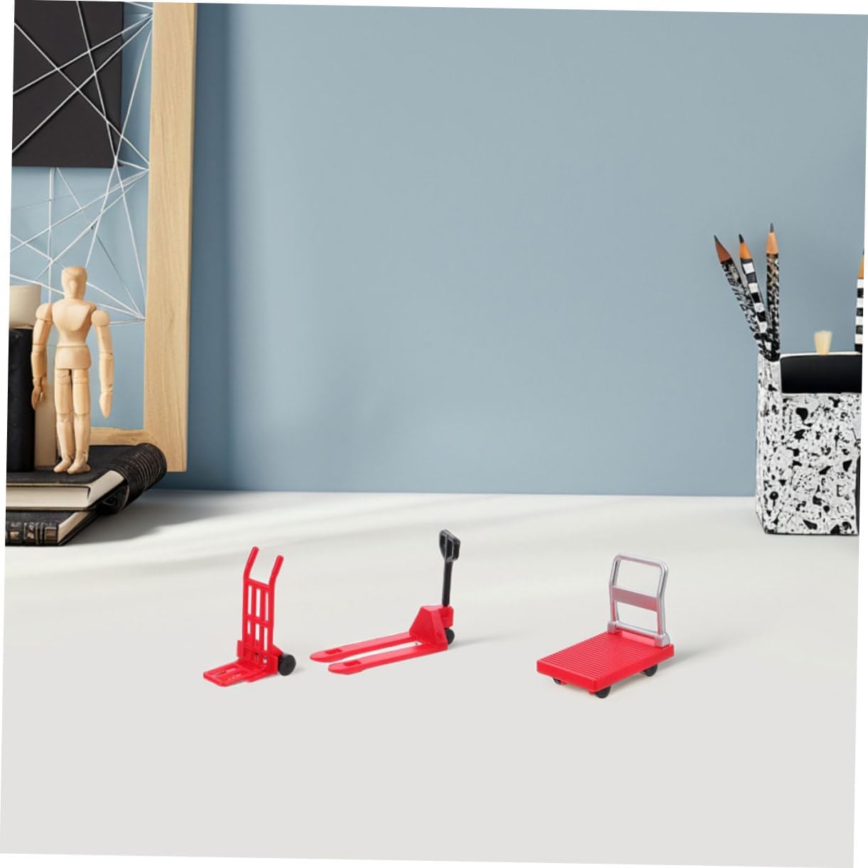 Artigianato: ogni miniatura è realizzata con attenzione ai dettagli, camion con piattaforma in miniatura, ornamento per carrello elevatore Parti multiple: carrello elevatore in miniatura, puleggia a mano e camion con piattaforma, che consentono varie combinazioni e configurazioni, giocattoli in miniatura per modellini stradali, mini strumenti di costruzione per lo spostamento Scelta ideale: una scelta ideale per compleanni e altre occasioni speciali, offrendo un tempo di gioco unico e divertente, ospitando strumenti in miniatura e rappresenta interessanti giocattoli per veicoli da costruzione Elaborato: ogni pezzo presenta una lavorazione artigianale dettagliata, mostrando la bellezza di modelli in miniatura, modelli di auto mobili e insegne di mini auto Decorativo: questi le miniature possono essere utilizzate come oggetti decorativi o come parte di un progetto fai-da-te, mini carretto, mini carrello elevatore