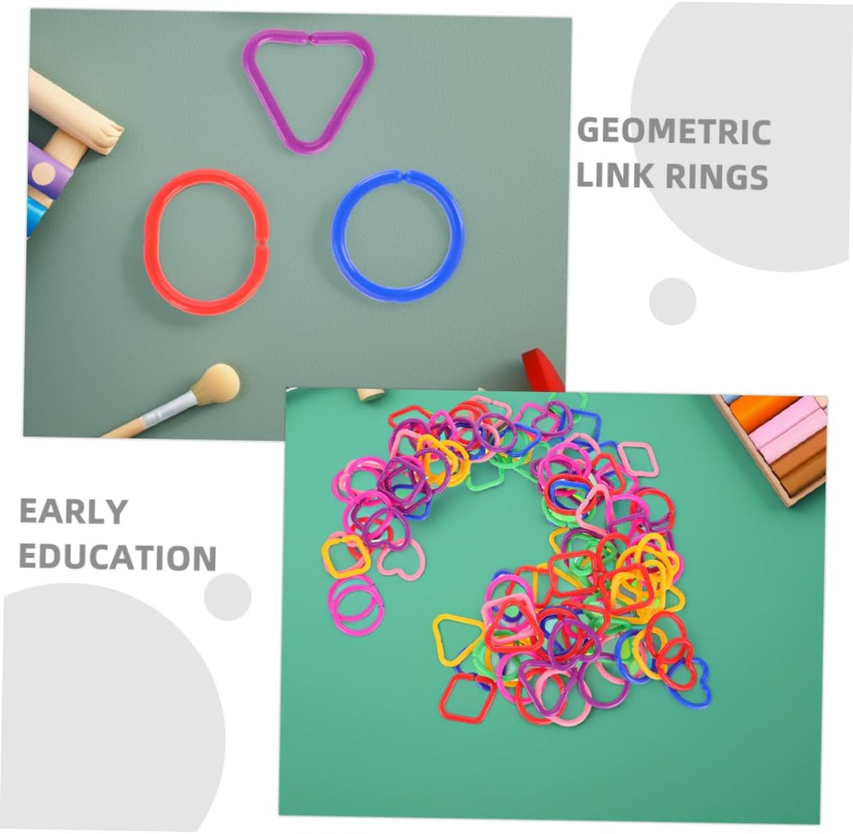 Abilità cognitive: migliora il tuo sviluppo cognitivo introducendoli a forme geometriche e colori di base con questi anelli di collegamento, anelli di collegamento, fai da te Sviluppo cognitivo: attraverso catene di collegamento geometriche, i possono apprendere concetti geometrici di base come forme e colori, migliorando le loro capacità di osservazione e cognitive, gioco di catene, maglie di catena di plastica Sviluppo delle abilità: coordinazione occhio-mano e capacità motorie attraverso il processo interattivo di collegamento degli anelli, maglie di catena in plastica fai da te, sospensione del passeggino Materiali sicuri: realizzati con materiali sicuri, sono sicuri da giocare, quindi puoi giocarci facilmente, suonare, anelli per Apprendimento versatile: adatto per asili nido, case e centri di educazione precoce, fornisce un'esperienza di apprendimento completa, anello, catena di collegamento in plastica fai-da-te