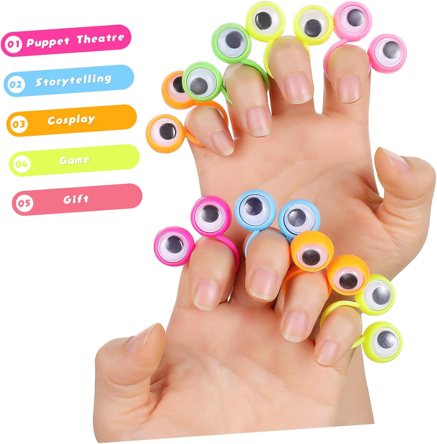 dei pacchetti 30 x giocattoli ad anello per dita con occhio Caratteristiche -Materiale: burattini da dito per in plastica -Colore: giocattolo da dito con colori assortiti per -Dimensioni: circa 3,50X3,00 cm/1,38X1,18 pollici anelli per occhi per -I giocattoli ad anello sono progettati per promuovere l'immaginazione creativa e il pensiero attraverso il movimento degli occhi. -Questi anelli con due grandi occhi mobili, dall'aspetto divertente, attirano l'attenzione dei come pupazzi da dito. -Ottimi giocattoli interattivi per la casa, la scuola, l'asilo e altri centri di apprendimento. Anello con marionetta da dito. -I nostri burattini ad anello sono ideali per raccontare storie, giochi di ruolo, presentazioni, giochi, feste e come . - Offrire giocattoli con anelli di colori diversi, per coltivare la consapevolezza dei colori e la capacità di riconoscimento dei giocattoli con gli occhi dei . Informazioni sulle merci burattini da dito I nostri prodotti sono anelli da dito a forma di bulbo oculare. Anelli giocattolo per Aiutano i a usare la loro immaginazione per creare il proprio mondo interiore e i giocattoli ad anello sono anche ottime per amici e familiari. Burattini da dito a forma di occhi Fornendo un tocco morbido e confortevole con i , i giocattoli da dito servono per promuovere divertire i più piccoli