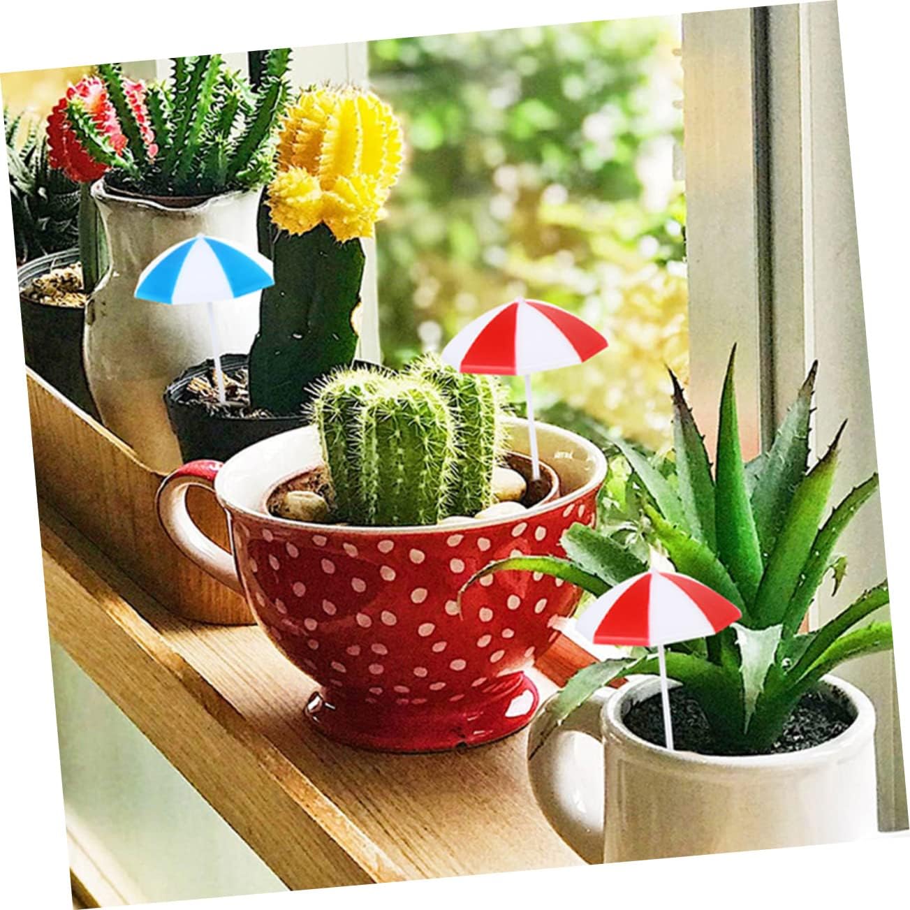 Ombrelli per terrari: il mini ornamento per ombrellone da spiaggia è adatto per giardini in miniatura, vetrine, paesaggi in vaso, decorazioni per piante, decorazioni per feste, ristoranti, decorazioni per bar, mini bambole Mini arredamento da spiaggia: realizzato con materiali stabili e affidabili, senza sbavature, senza deformazioni o sbiadimenti, senza deformazioni o screpolature, ombrellone da spiaggia micro paesaggistico Mobili in miniatura: realizzati in materiale sicuro, solido e leggero, un bel ombrellone da spiaggia per costruire scene realistiche del mare, ombrellone per la sabbia Mini accessori per la casa: decorazioni per ombrelloni altamente simulate, possono essere abbinate ad altre decorazioni per case delle bambole per un migliore effetto decorativo, mini ombrellone da spiaggia Decorazione dell'ombrellone dell'acquario: l'ombrellone da spiaggia di piccole dimensioni sarà preferito bambini e può essere davvero unico nella casa delle bambole, nei mobili da giardino delle fate