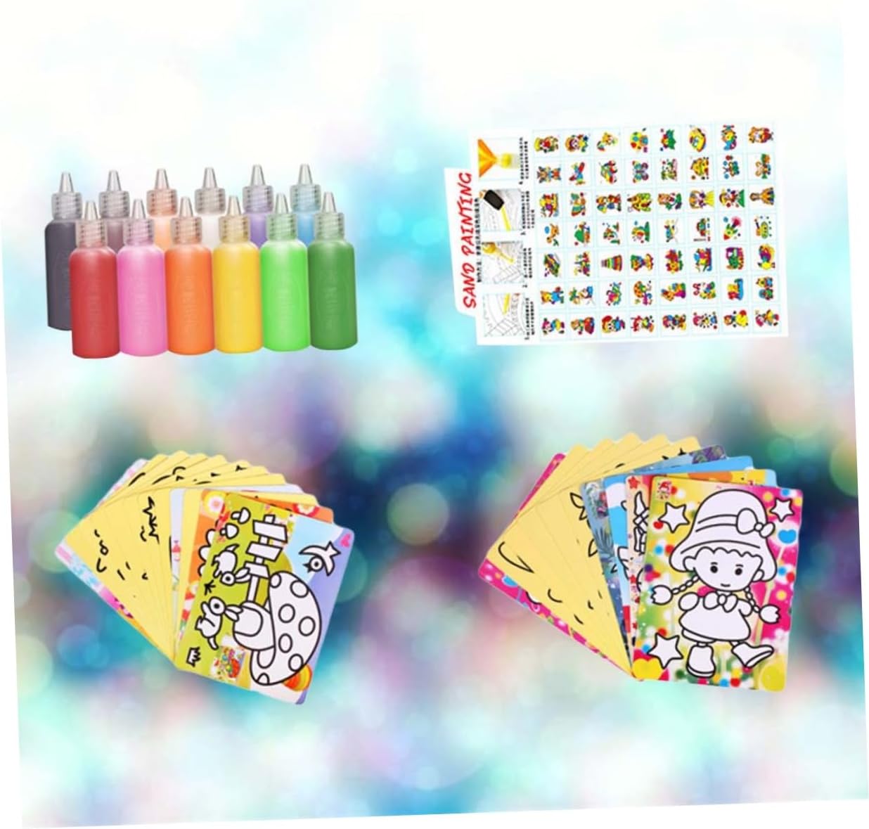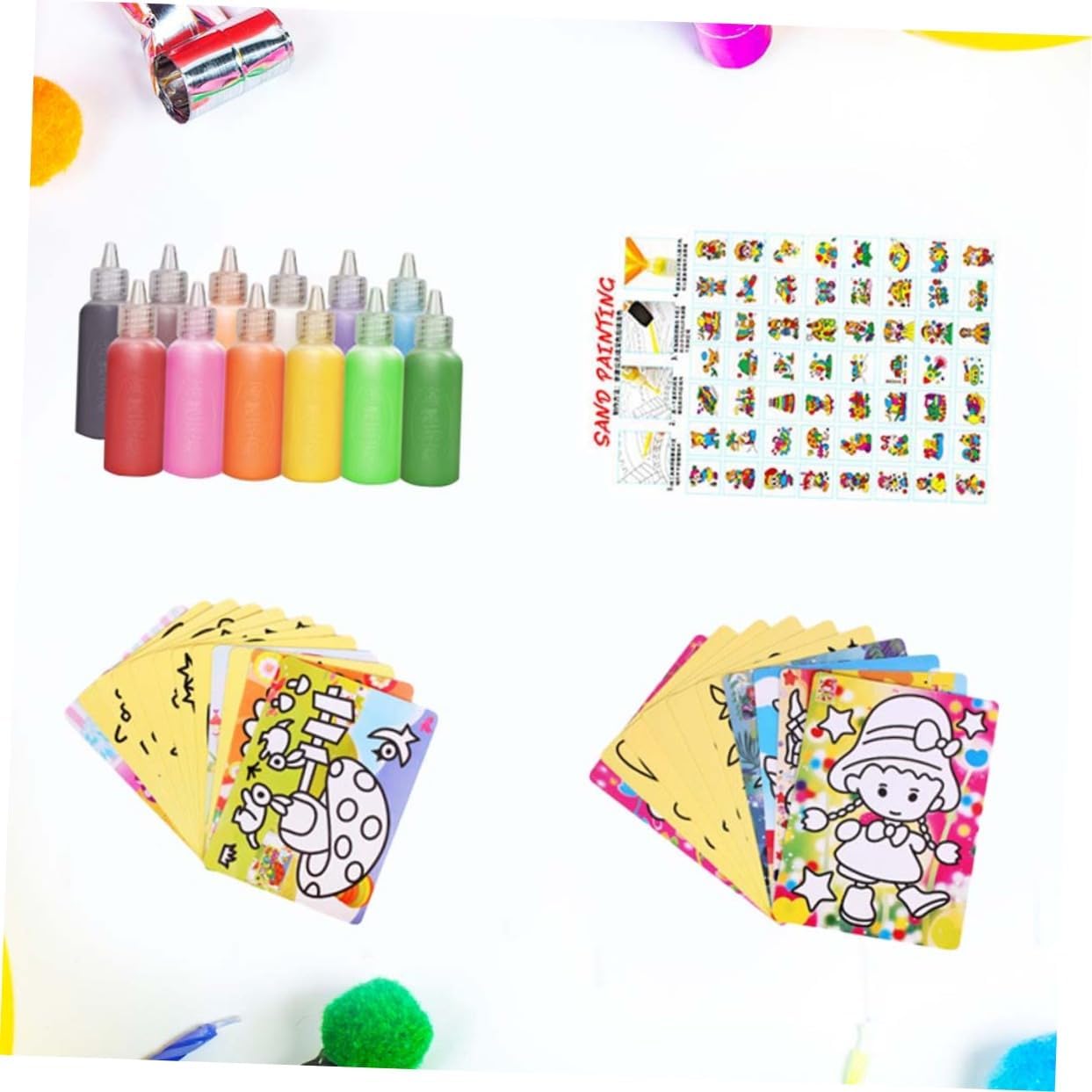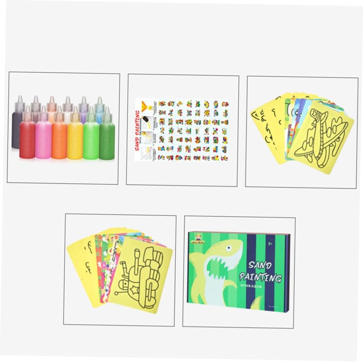 Giocattoli: i bambini possono abbinare i colori secondo i modelli delle carte da pittura con arte della sabbia e sviluppare la loro immaginazione. Giocattoli per ragazze: può esercitare la coordinazione occhio-mano, la creatività e l'immaginazione dei bambini e migliorare le capacità cognitive dei bambini durante la produzione. Giocattolo-- i bambini devono essere accompagnati all'inizio della produzione.