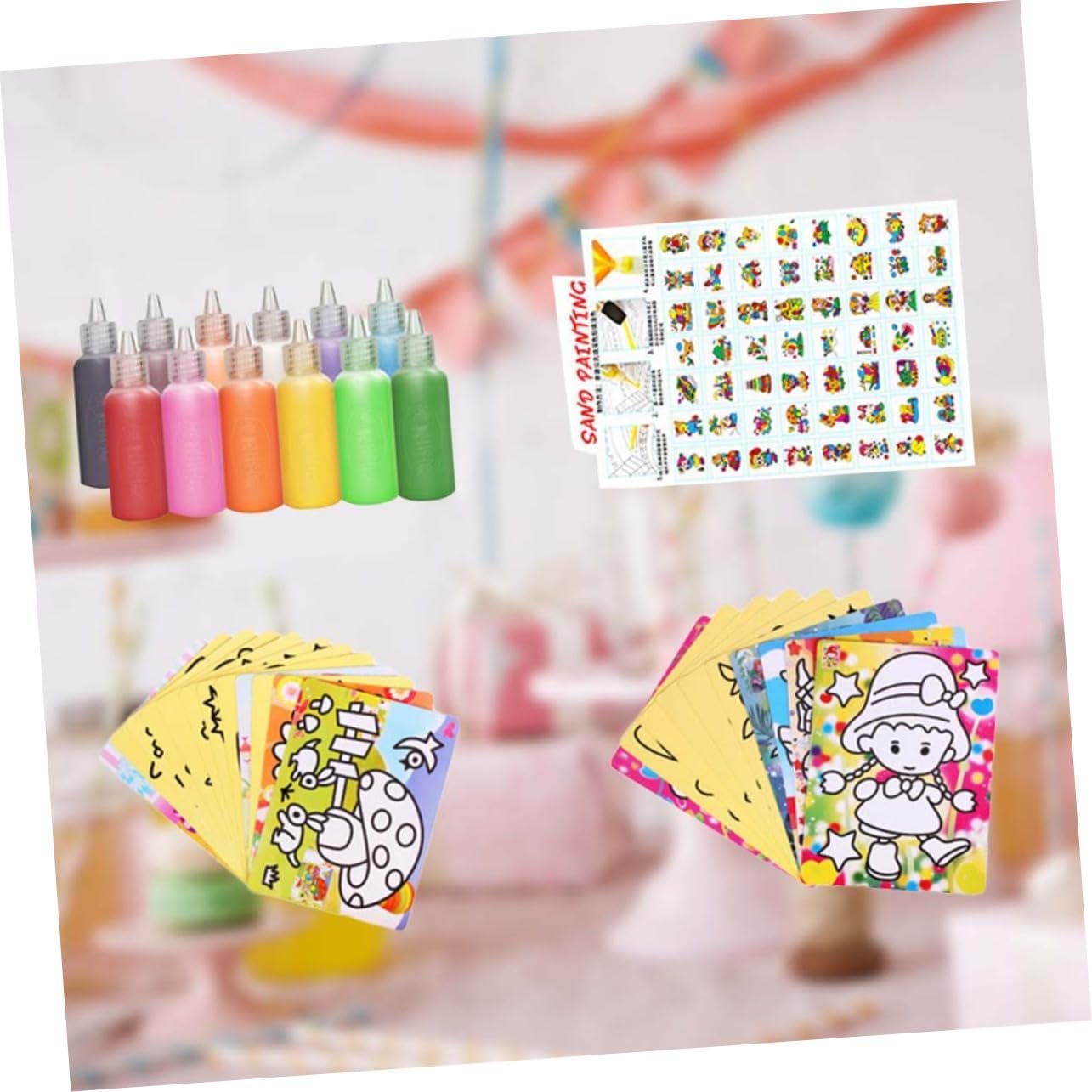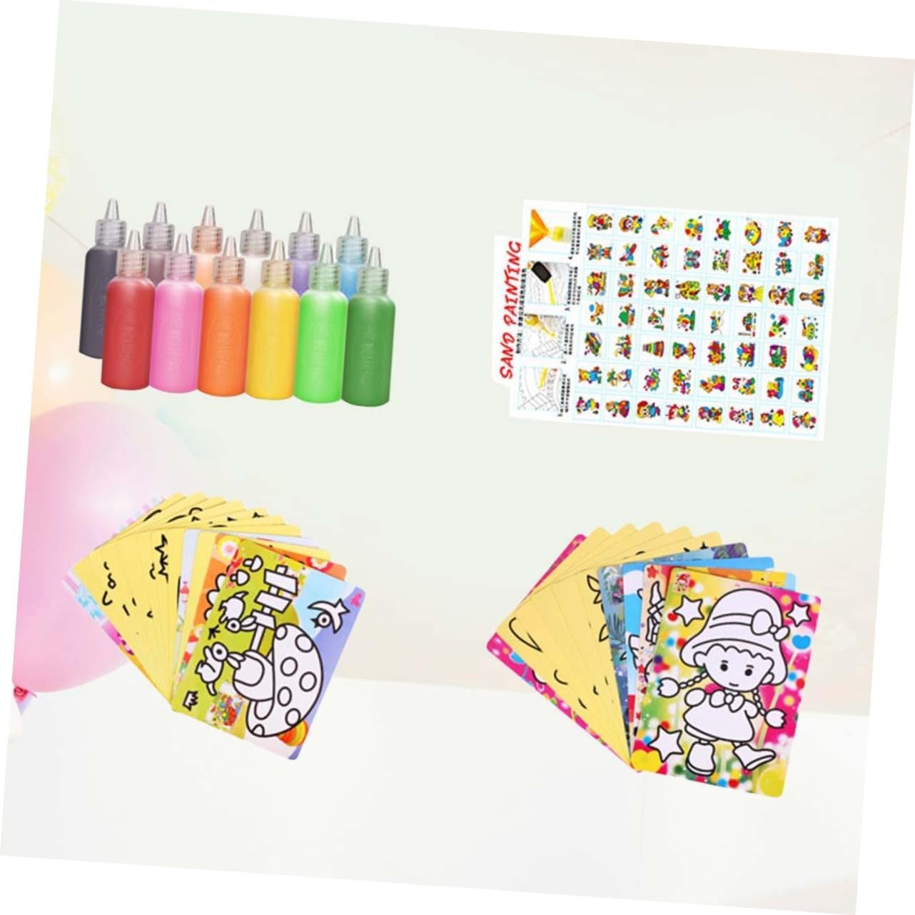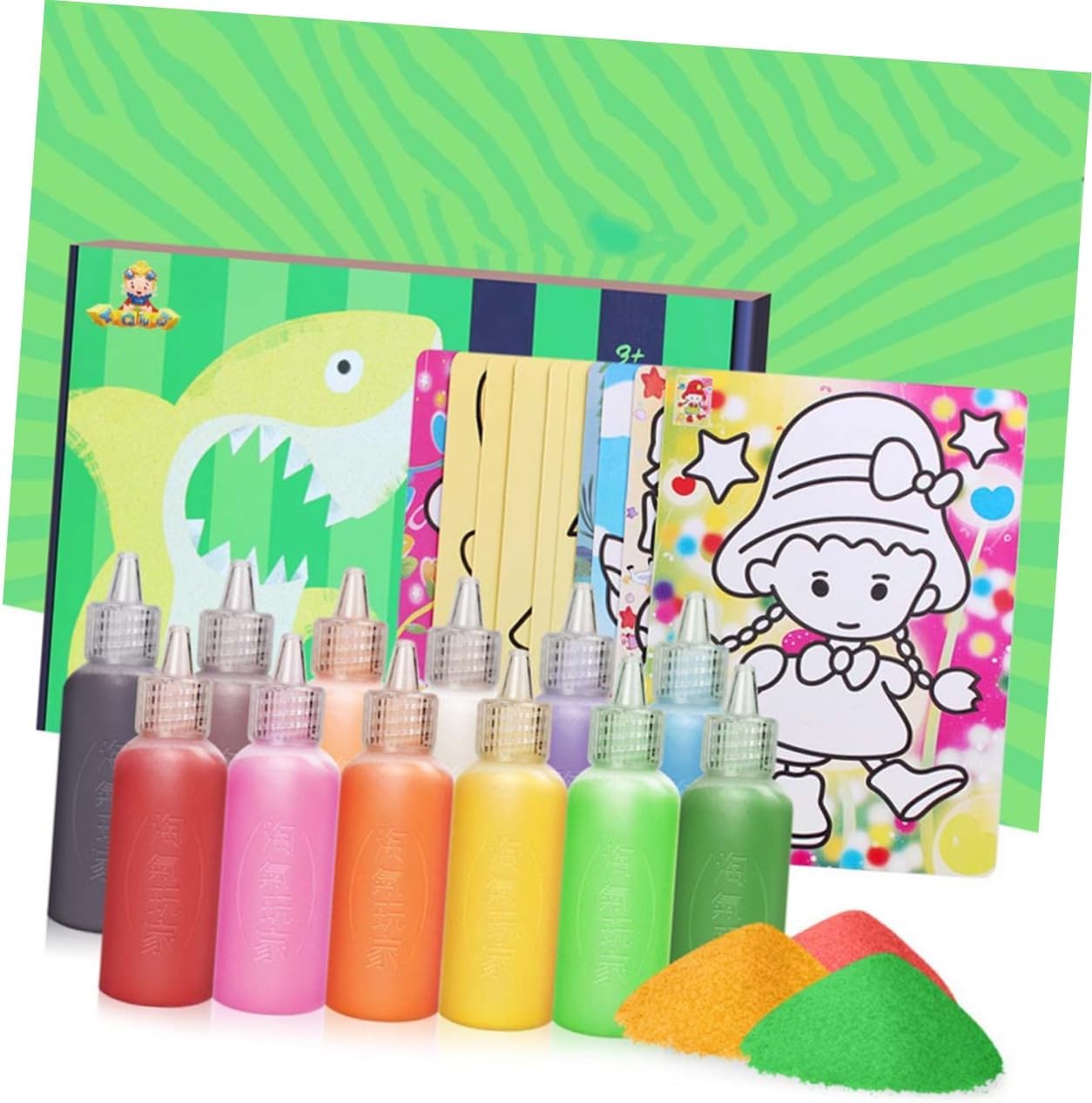 Giocattoli: i bambini possono abbinare i colori secondo i modelli delle carte da pittura con arte della sabbia e sviluppare la loro immaginazione. Giocattoli per ragazze: può esercitare la coordinazione occhio-mano, la creatività e l'immaginazione dei bambini e migliorare le capacità cognitive dei bambini durante la produzione. Giocattolo-- i bambini devono essere accompagnati all'inizio della produzione.