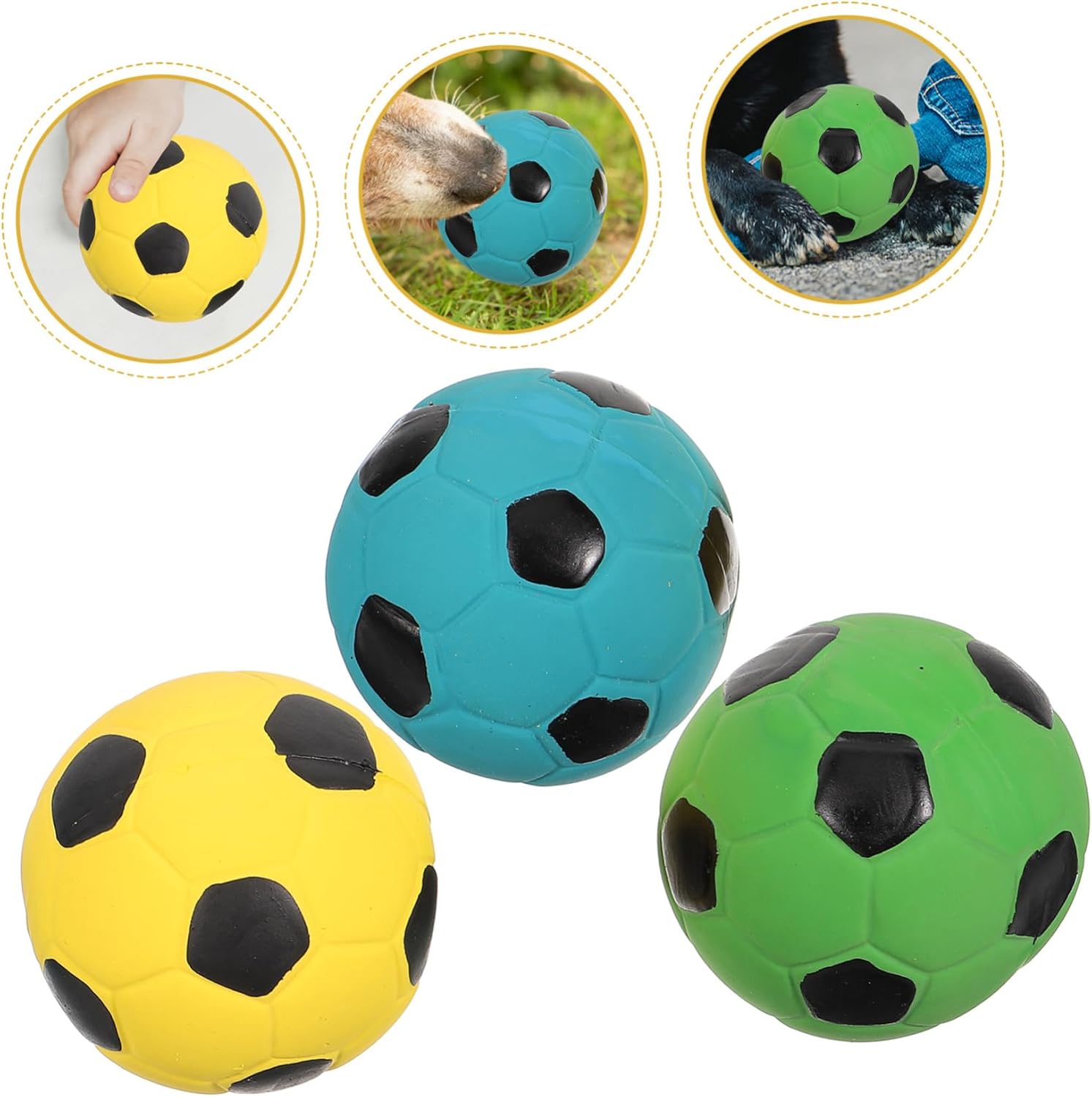 Giocattolo con palla sonora: puoi giocarci con i tuoi animali domestici o con i piccoli insieme, giocattolo da calcio sonoro Giocattolo da calcio: il giocattolo con la palla sonora è interessante e attraente per animali domestici e giocattoli da calcio sonori Giocattolo da calcio sonoro: questo è un giocattolo creativo con palla sonora, con forma di calcio e palline rimbalzanti Palline rimbalzanti: puoi goderti un momento divertente e rilassante con i tuoi animali domestici, un giocattolo da calcio sonoro Divertente giocattolo con la palla: realizzato in lattice di alta qualità e, un lungo periodo di utilizzo, un suono giocattolo da calcio