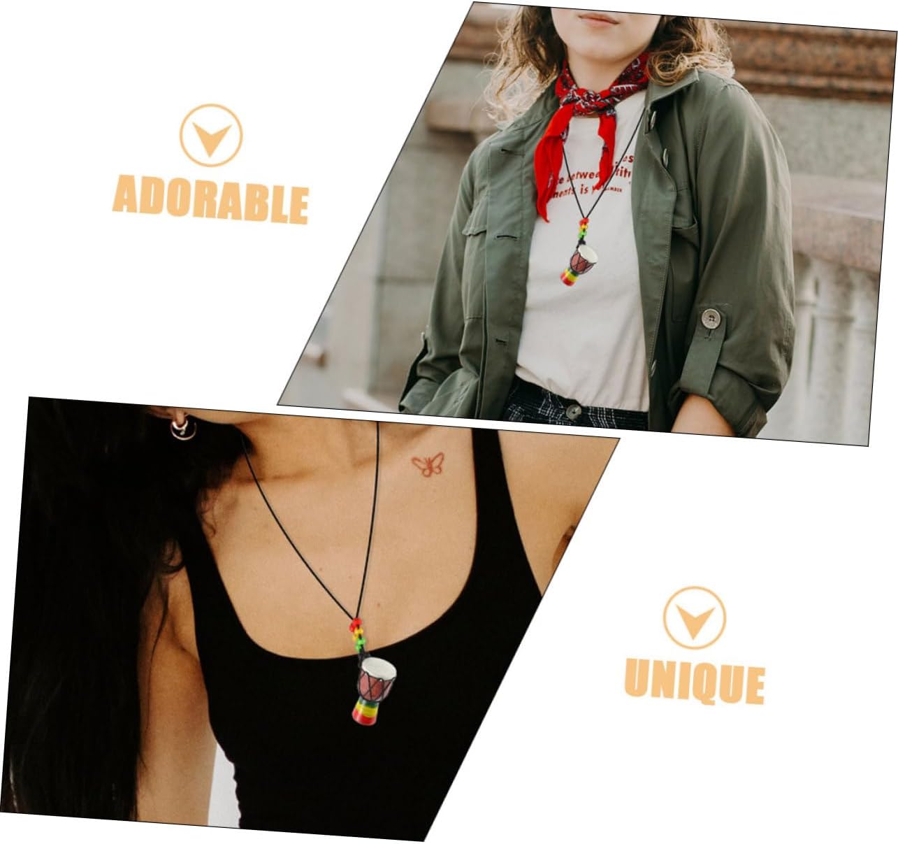 Materiale durevole: realizzato in legno selezionato, il ciondolo è durevole e mantiene il suo bell'aspetto Speciale: un speciale per amici e familiari, che riflette il tuo gusto unico e il tuo affetto Piccolo e affascinante: la collana con ciondolo a tamburo africano in miniatura è piccola e affascinante, ideale per chi ama gli accessori delicati Bellezza fatta a mano: ogni pezzo è fatto a mano con cura, evidenziando la bellezza dell'arte culturale africana Utilizzo flessibile: questo accessorio versatile può essere indossato intorno al collo o utilizzato come ciondolo decorativo su vari oggetti
