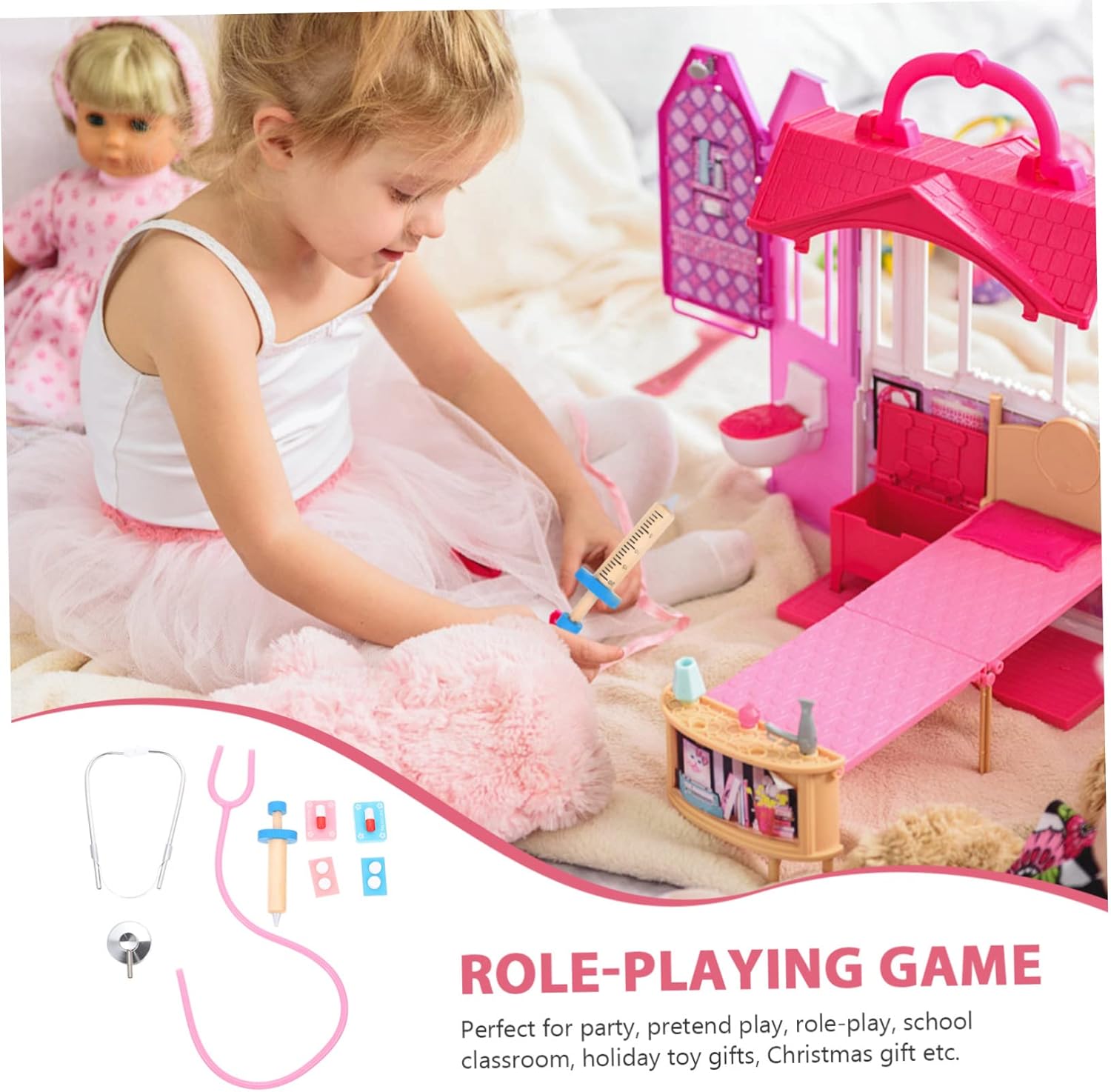 Kit giocattolo per bambini: il kit medico realistico rende il gioco di ruolo più reale, portando più divertimento nei giochi di finzione. Giocattoli con dei cartoni animati: il set di giocattoli premurosi può essere un fantastico di natale o di compleanno per qualsiasi aspirante giovane medico! Divertente kit da dottore: questo set da dottore contiene vari gadget medici che stimoleranno l'immaginazione del tuo bambino! Kit medico per bambini: realizzato in materiale sicuro per i bambini, i tuoi bambini potranno giocare con sicurezza al set di giocattoli. per bambini: impegnarsi in giochi di ruolo darà al bambino una fiducia e svilupperà l'empatia.