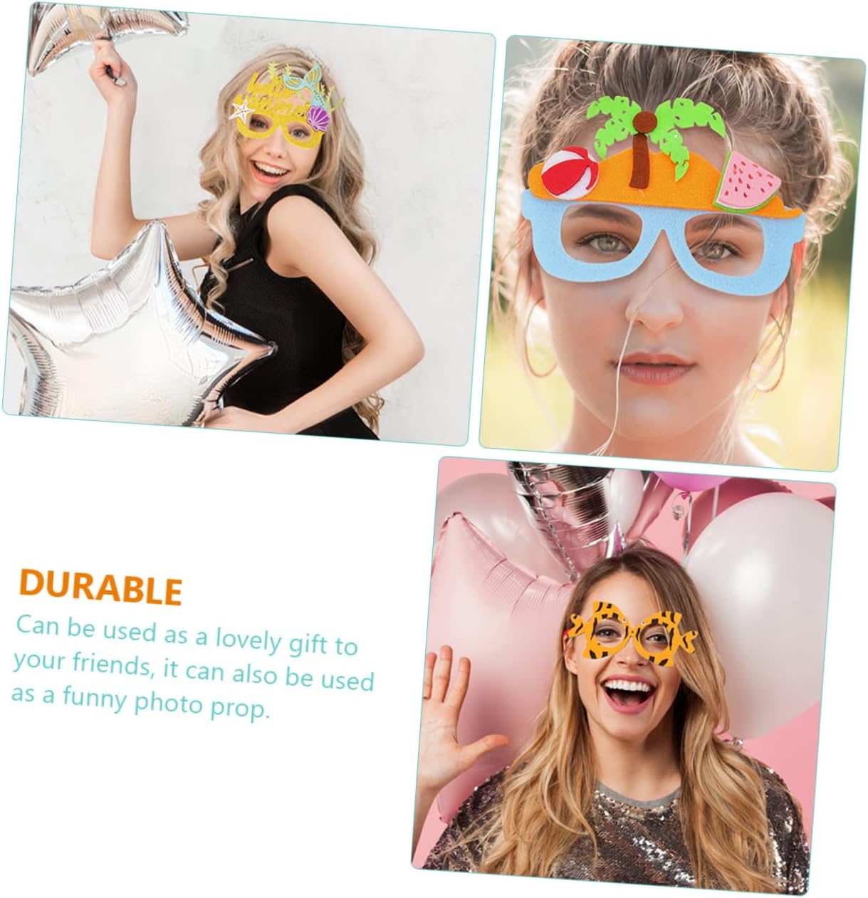 dei pacchetti 4 bicchieri da festa hawaiana Caratteristiche - Dimensioni: circa 17,00X14,50X13,50 cm / 6,68X5,70X5,31 pollici. Accessori per foto di feste -Materiale: panno di feltro + plastica. Occhiali da costume - Creare atmosfera: creare un'atmosfera piacevole e interessante per la festa. Articoli per feste. -Colore: Colori assortiti. Bicchieri da festa hawaiani - Il design creativo li rende unici e attira l'attenzione. Divertitevi e ridete un po' con questi occhiali per . - Forma unica e personalità completa, adatti a tutti i tipi di ballo, feste, donano alla tua performance più interesse e personalità, ti renderanno il centro dell'attenzione di tutti Bomboniere per feste per . - Il design divertente e creativo a tema Hawaii è perfetto per mettere in risalto l'atmosfera della festa con questo accessorio fotografico hawaiano. - Struttura leggera e robusta, non si rompe facilmente ed è comodo da indossare per lunghi periodi. Accessorio per feste. Informazioni sulle merci Accessori per feste creativi e di aspetto, ti aiutano a prendere al gioco divertente, condividi una giornata indimenticabile con la tua famiglia. Gli occhiali divertenti per feste a tema Hawaii sono perfetti per feste in maschera e decorazioni per feste a tema. Occhiali per foto, divertenti oggetti di scena e giocattoli per scherzi per feste, cosplay e feste in maschera.