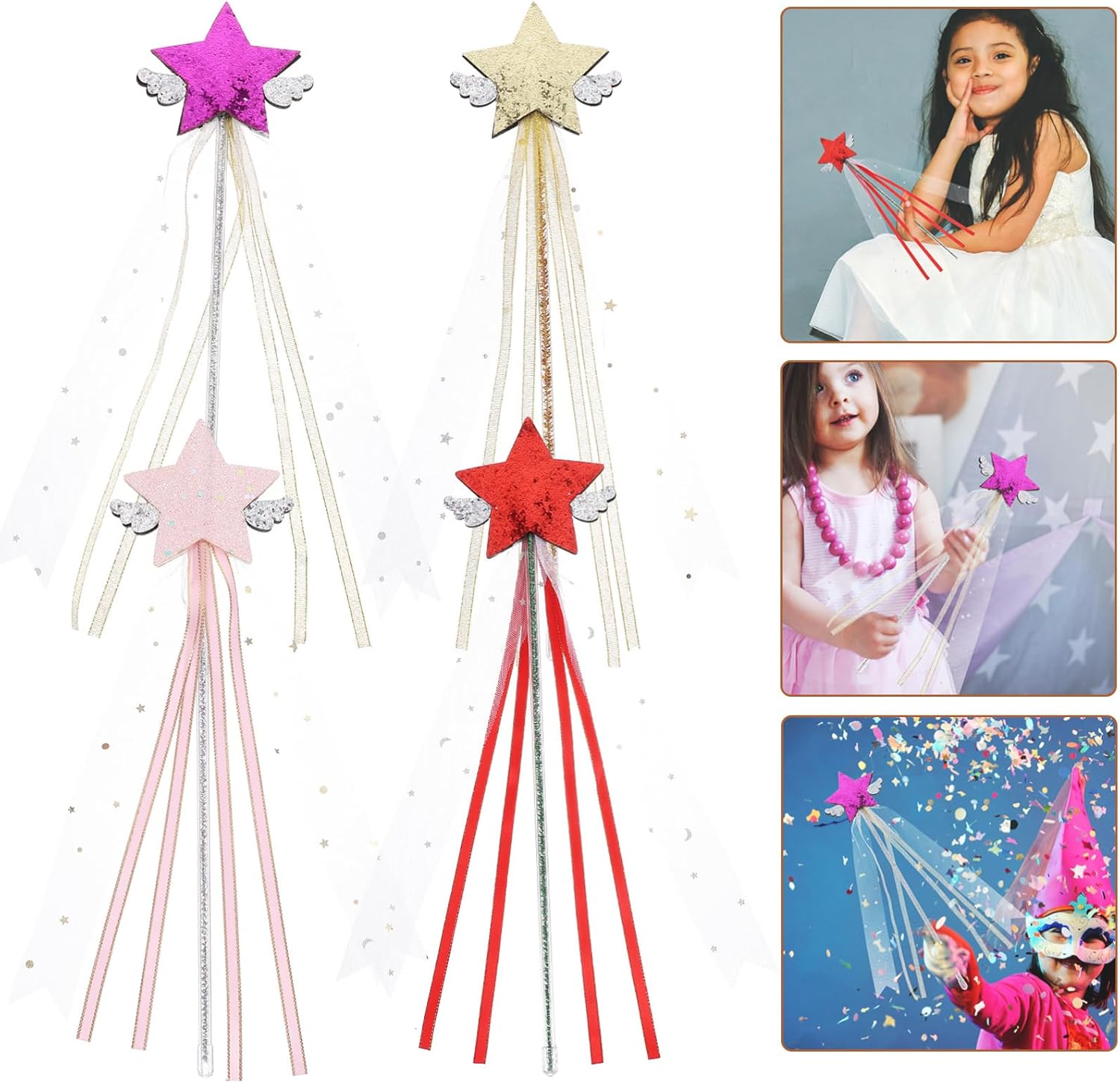 Bastoncini di fata angolari: adatti per feste di compleanno, travestimenti, halloween, cosplay, giochi di finzione, spettacoli teatrali e altro ancora, giocattolo di fata Fata: adatta per la tua bambina e la tua famiglia, avrà un'infanzia felice, fata per Accessorio fotografico: può essere utilizzato come giocattolo per e come oggetto di scena per concerti, balli, feste e fotografia, bacchette magiche a forma di stella Bacchette fatate per bambine: e pratiche, leggere e facili da impugnare, tengono i tuoi intrattenuti, bacchette fatate con design a nastro Giocattoli con : luminosi e belli, e i possono tenerli facilmente, che è un magico molto comodo e squisito, un magico a forma di stella