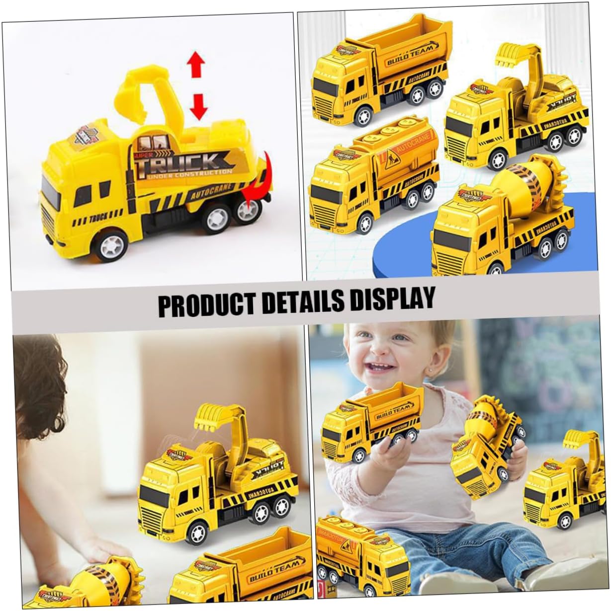 Materiali sicuri: i materiali utilizzati per realizzare questo giocattolo sono sicuri per i bambini, puoi acquistarlo facilmente, veicoli da costruzione giocattolo per bambini, giocattoli per auto a trazione posteriore Sviluppa la creatività e le capacità di risoluzione dei problemi: questo giocattolo incoraggia i bambini a usare la loro immaginazione e creatività, mentre escogitano diversi scenari per giocare con il veicolo, le auto a frizione, i giocattoli dei veicoli da costruzione Mini camion da costruzione: design a inerzia, facili da avviare, comodi da trasportare, non facili da perdere, giocattoli da costruzione per veicoli Macchinine a frizione per bambini piccoli: il design divertente e interessante può facilmente attirare l'attenzione dei tuoi bambini e conquistare il loro amore, piccolo camion giocattolo per bambini Incoraggia il gioco fantasioso: il set di piccoli camion giocattolo da costruzione stimola il gioco fantasioso poiché i bambini possono creare i propri scenari, piccoli camion da costruzione, piccoli camion alimentati a frizione