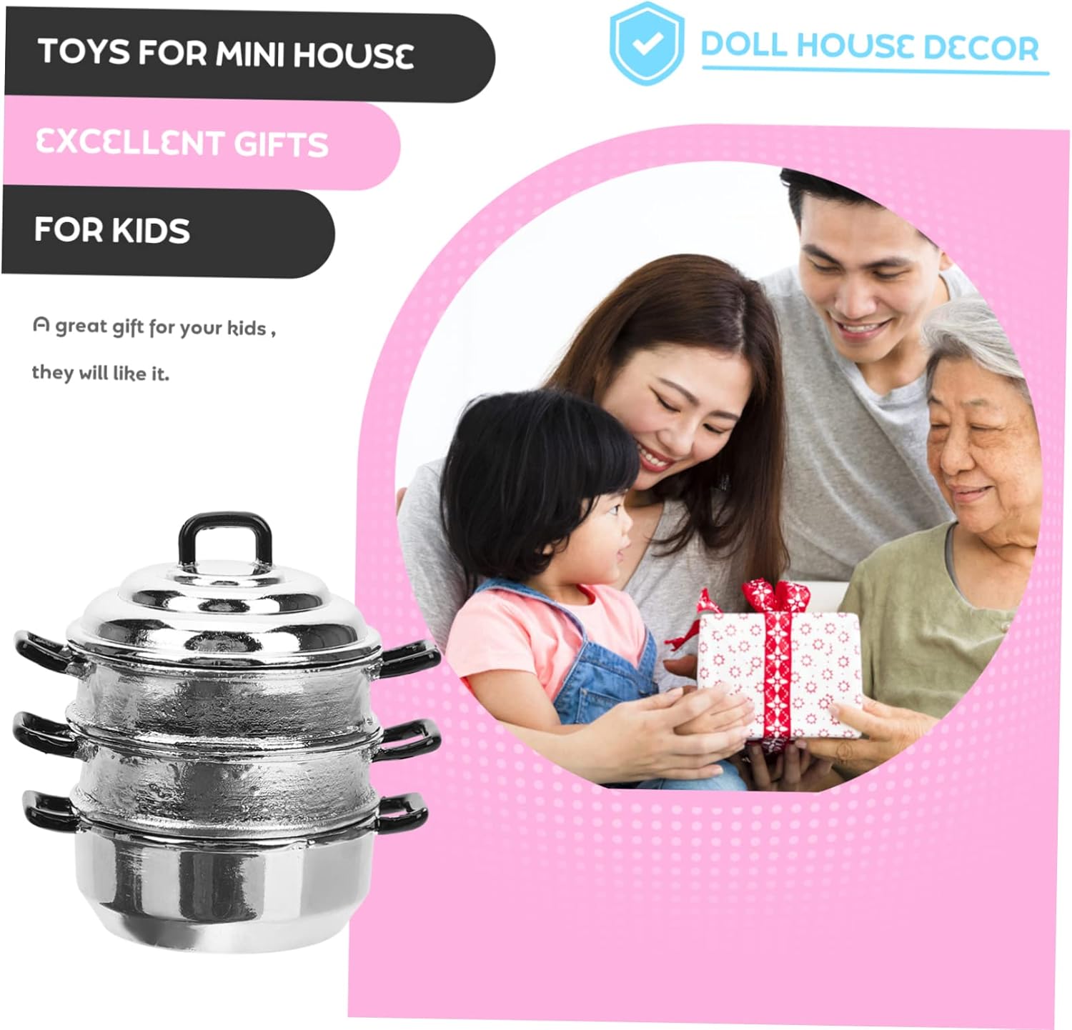 Pentole in acciaio inossidabile: questo articolo è realizzato per un uso durevole e può essere utilizzato a lungo. Mini fornello: inoltre, può sviluppare notevolmente le capacità cognitive, l'intelligenza e la creatività dei bambini. Giocattolo da cucina per bambini: un buon partner per l'interazione genitore-figlio, favorevole a migliorare il rapporto tra genitori e figli. Wok inossidabile: pentola a vapore a strati, forma realistica, adorabile e divertente, adatta anche per l'arredamento della casa delle bambole. Accessori per case delle bambole in miniatura: con un design adorabile e innovativo, può sicuramente portare divertimento e gioia al tuo piccolo.