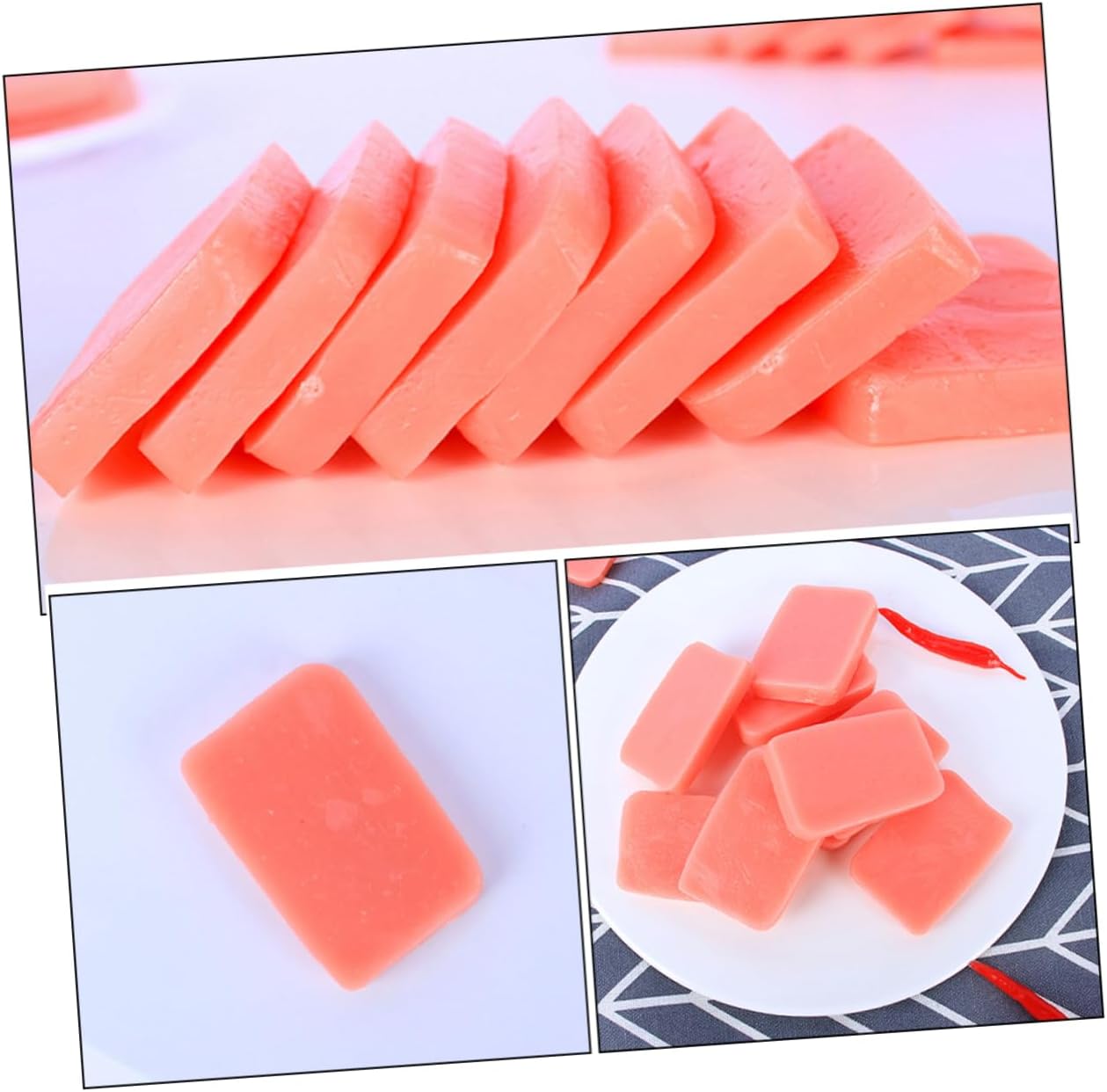 Accessorio per foto di carne per pranzo - Questo modello di una fetta di carne finta per pranzo è fatto di buon materiale, il modello di cibo finto è sicuro da usare e può essere utilizzato ripetutamente, Accessorio per cucina con decorazione di cibo artificiale per carne per pranzo finta - con il design di una deliziosa fetta di carne per pranzo che sembra vera carne per pranzo, Giocattolo da cucina modello carne per pranzo in cucina - Rinfrescerà la tua casa e ti porterà l'umore, il che è molto divertente e realistico. Luncheon Meat Plaything Modello di carne finta per il pranzo - La fetta di carne finta sembra davvero buona ed è realistica, decorativa e pratica, sembra davvero realistica. Simulazione di fette di carne per la colazione Supporto artificiale per carne da pranzo - realizzato con materiali avanzati, sicuro e pratico, creativo, non facile da sbiadire, modello di cibo finto