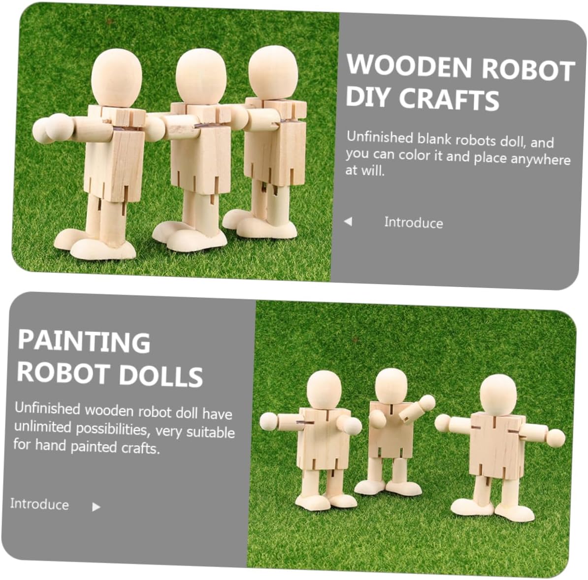 Bambole di legno fai da te: il design semplice e adorabile a forma di robot rende queste bambole di legno adatte perfettamente all'uso decorativo, piccole bambole di legno Robot di legno fai da te: il kit di bambole di legno è un meraviglioso per chi ama collezionare questo tipo di artigianato, robot di pittura fai da te Bambole robot da pittura: le bambole di legno possono essere utilizzate come decorazione o come oggetto di scena per le foto e possono decorare la tua micro scena, i tuoi mestieri robotici Bambole robot incompiute: puoi colorare e disegnare liberamente motivi sulla superficie del legno per creare decorazioni uniche, forniture fai da te Bambola vuota: elegante e superbamente dettagliata, i robot in legno non finiti possono anche aggiungere un tocco di fascino alla tua casa, robot incompiuto fai da te