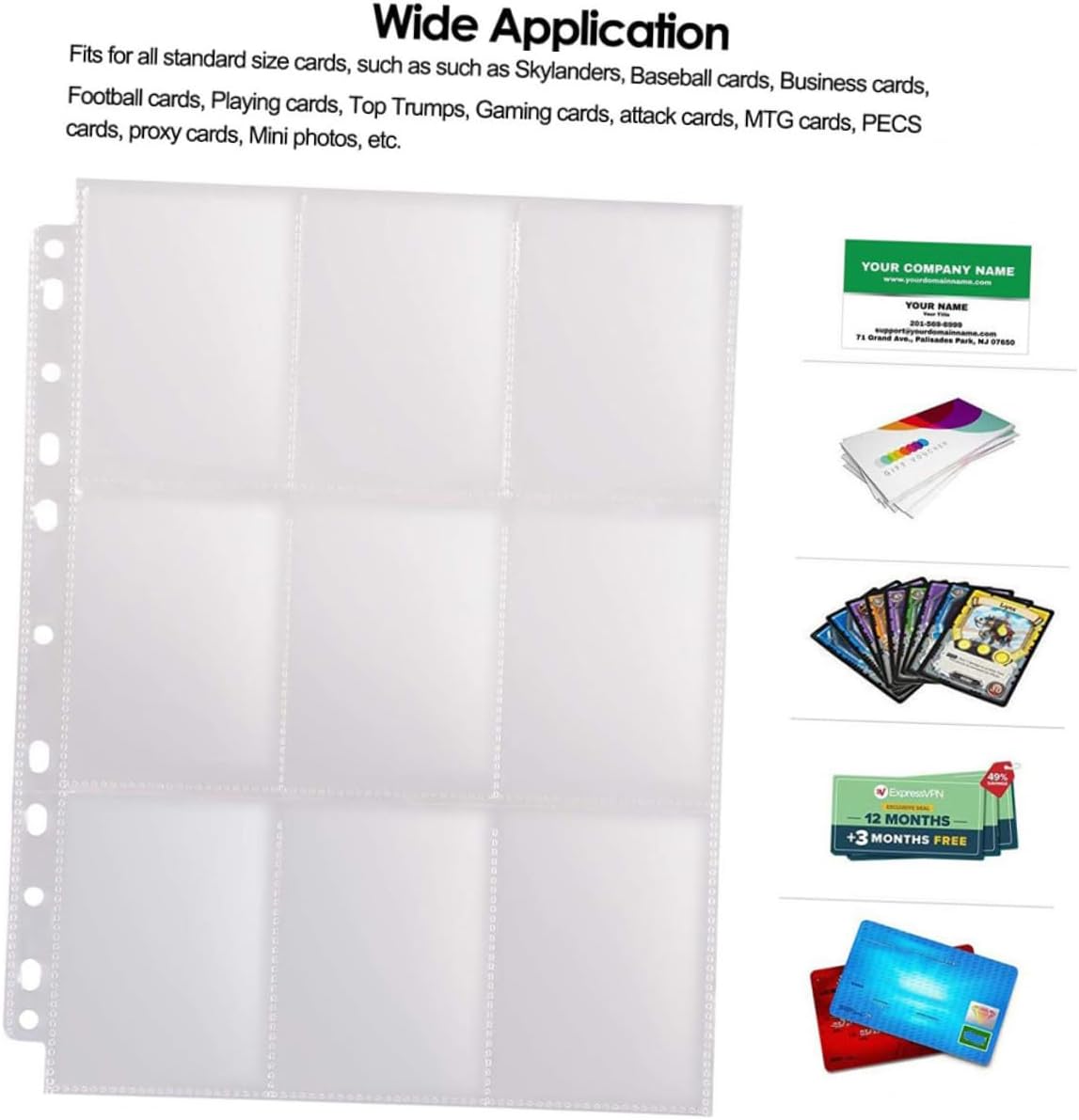 Protezione per carte trasparenti: anche per carte adesive, francobolli e altri oggetti da collezione, ideale per collezionare carte sportive, biglietti da visita e carte da gioco del mondo, buste trasparenti per carte Buste trasparenti per carte: ottime pagine per archiviare le carte per gli artisti da archiviare per la visualizzazione, protezioni per le pagine delle carte Accessorio per la protezione delle carte: i sigilli delle pagine dei porta carte sono sigillati in modo solido per un'elevata resistenza della tenuta e una migliore qualità distesa, protezioni per le pagine delle carte tascabili Buste per carte collezionabili: elevata chiarezza per presentare le tue carte collezionabili nei loro veri colori, le pagine sono chiare su entrambi i lati, organizzatore di carte Accessori per la protezione delle carte: sicuri da usare e super per proteggere e organizzare le tue carte collezionabili!, buste trasparenti per carte