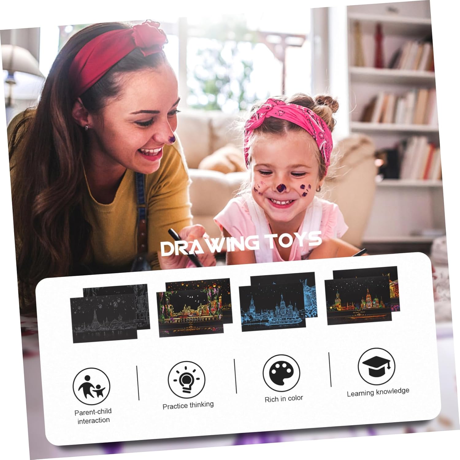 Dipinti da grattare vuoti: puoi utilizzare una cornice per foto da appendere al muro o metterla sul tavolo per aumentare l'atmosfera artistica, decorare la tua casa, puoi anche esporre opere d'arte o come per amici o familiari, gratta e scrivi un giocattolo da dipingere Giocattolo di carta antigraffio: squisito e piccolo, facile da trasportare, può stare nello zaino o nella borsa, è un buon compagno per i viaggi all'aperto, gratta e vinci Bomboniere: questo set stimola l'immaginazione attraverso un metodo semplice e veloce, permettendo ai di essere coinvolti nella creazione e coltivare un artista, carte fai da te per Gratta e vinci con scena notturna della città: per viaggi e gite, mettilo nello zaino, nella borsa e crea ogni volta che arriva l'ispirazione, gratta e vinci Giocattolo per dipingere gratta e vinci: sicuro da usare, così i possono prendersi il loro tempo per giocare, pensare, testare e prepararsi per i loro capolavori, gratta e vinci