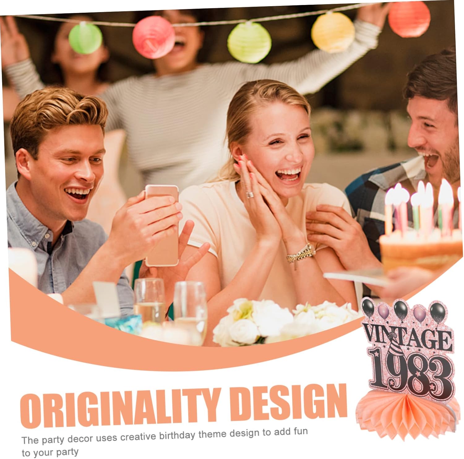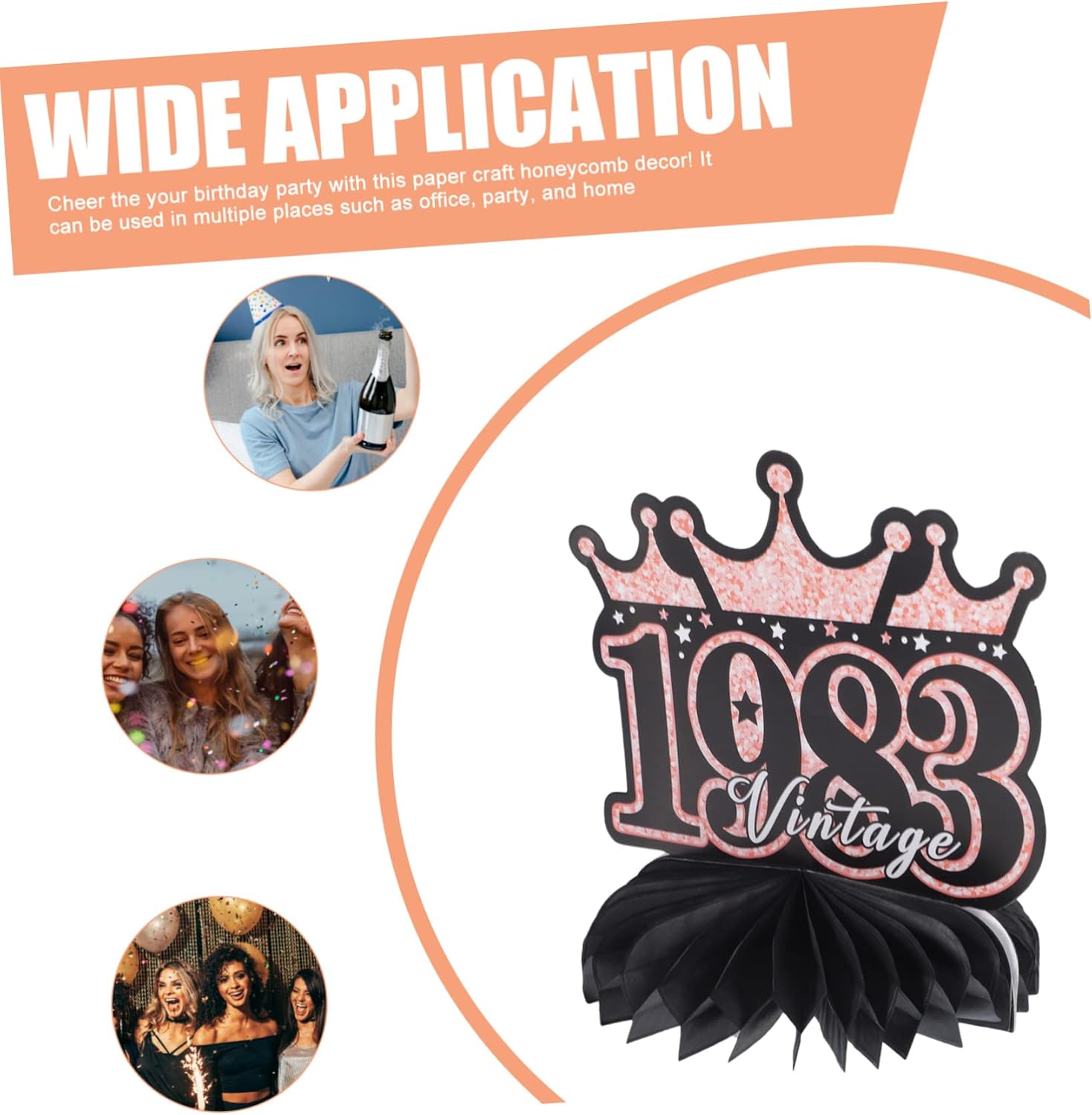 Centrotavola per il 40° compleanno del 1983: l'arredamento della festa utilizza un design creativo a tema di compleanno per aggiungere divertimento alla tua festa. Centrotavola a nido d'ape tavolo: l'ornamento ha un aspetto a nido d'ape e un peso leggero, facile posizionare sul desktop. Decorazioni tavola per il 40° compleanno: la pregevole fattura garantisce una stampa chiara del motivo e un design delicato dettagli, pratico usare. Pompon di carta di compleanno: le decorazioni a nido d'ape a tema di compleanno sono molto creative, adatte per il layout della scena della festa di compleanno delle donne. Decorazioni per feste con palline a nido d'ape: questo ornamento è realizzato con materiale cartaceo, pratico per il layout della scena della festa di compleanno.