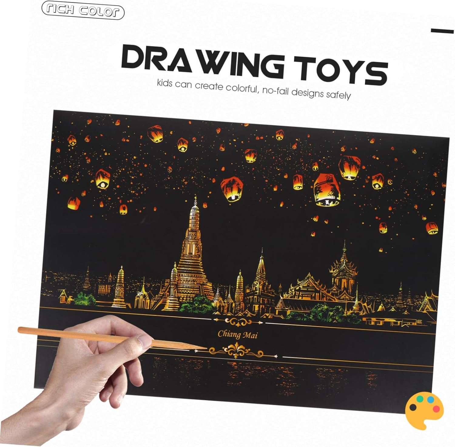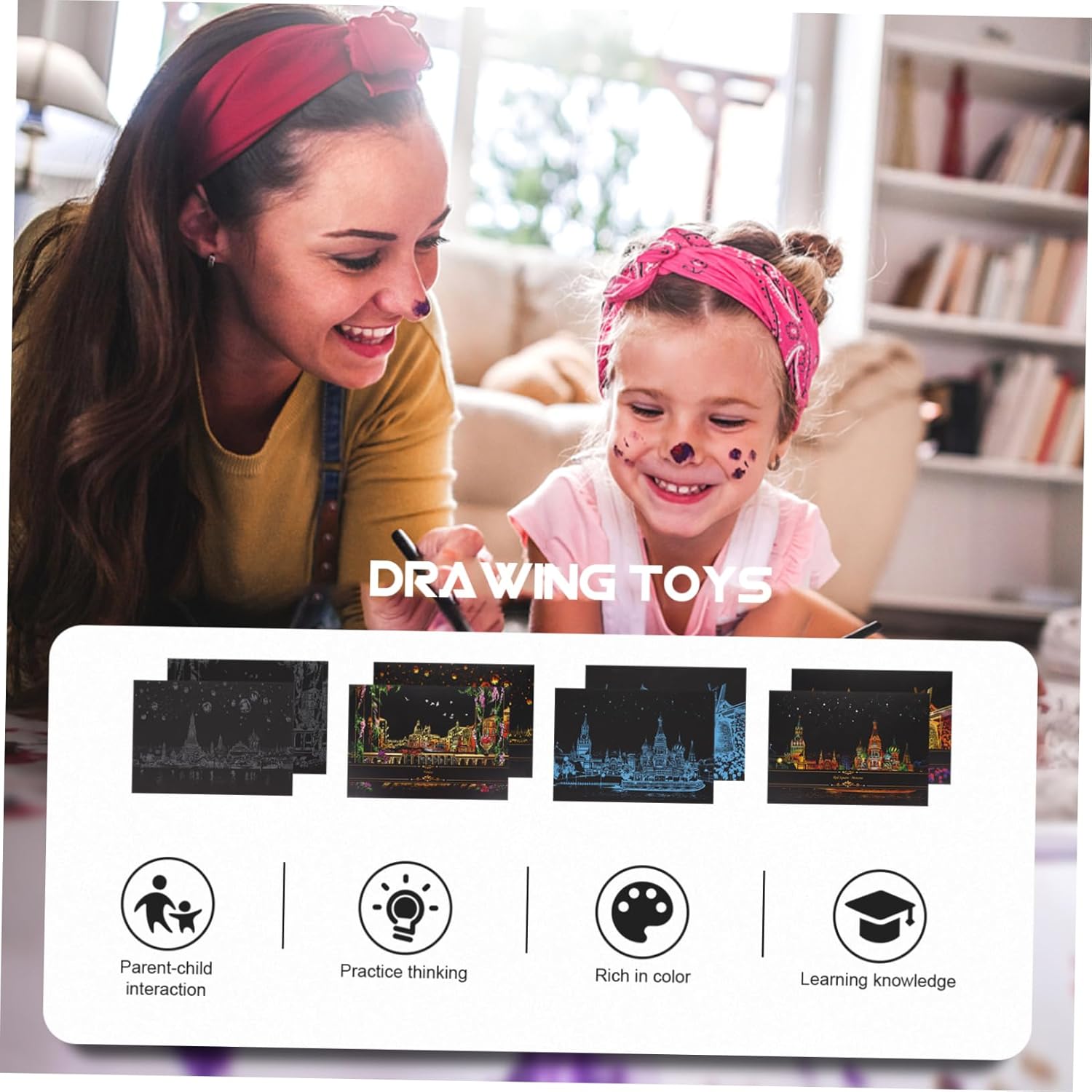 Gratta e vinci arcobaleno: saranno attratti deliziosi gratta e vinci e saranno occupati con gioia. i bambini concentrano l'attenzione e saranno ben allenati finendo il gratta e vinci. Carta da grattare nera: è un giocattolo divertente e innovativo per i bambini, anche un ottimo treno per allenare le abilità pratiche dei bambini e lo sviluppo dell'intelligenza. Carte fai da te per bambini: sicure, così i bambini possono creare disegni colorati e perfetti in tutta sicurezza. e i bambini sviluppano il controllo motorio e aumentano la fiducia attraverso l'espressione artistica. Gratta e vinci con scena notturna per pittura da grattare: è un delizioso mestiere fatto a mano per il tempo libero per bambini e adulti che può . Gratta e vinci, creazione artistica: sicuri da usare, così i bambini possono prendersi il tempo per giocare, pensare, testare e prepararsi per i loro capolavori.