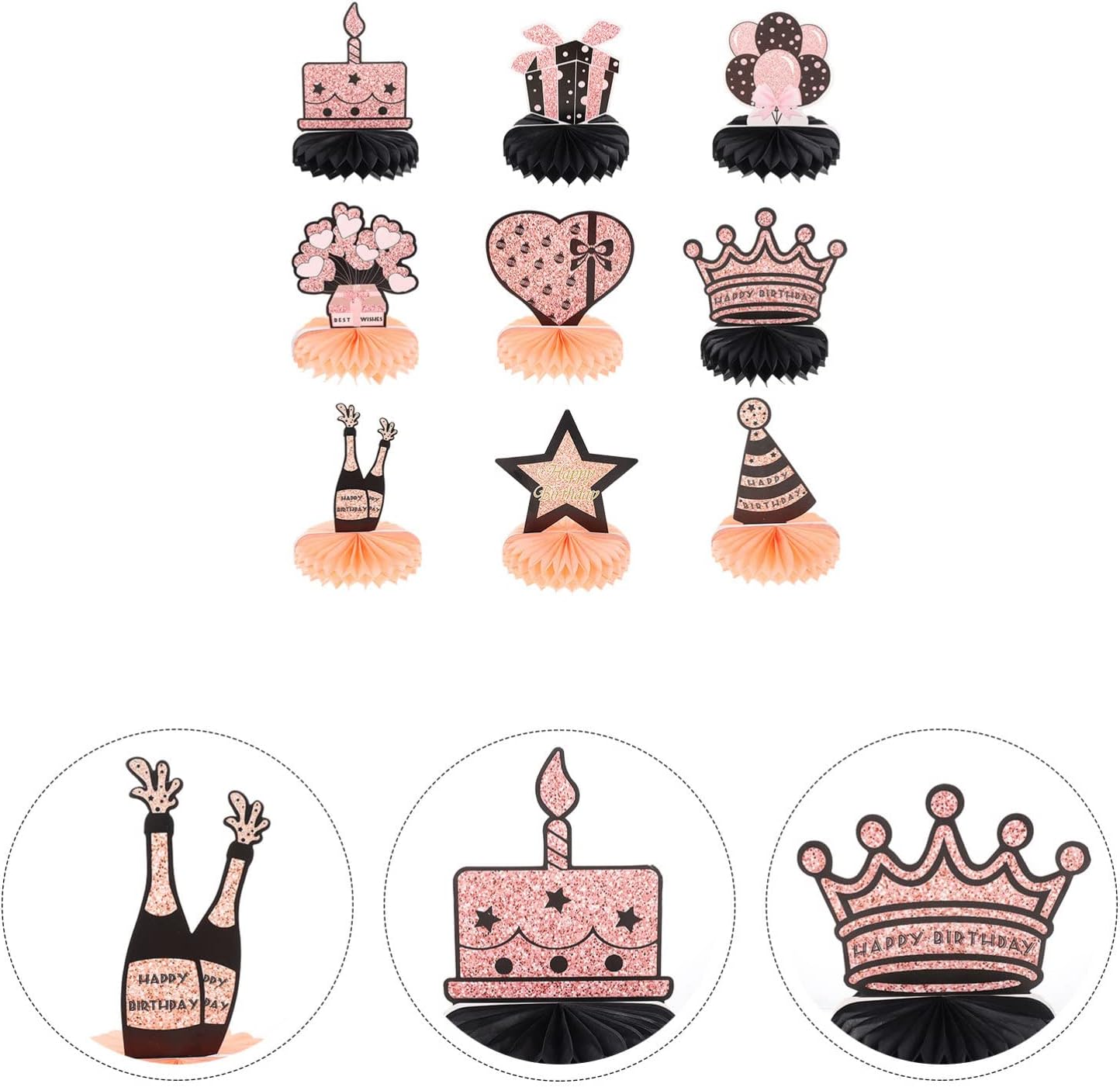 Decorazioni per la tavola di compleanno: i centrotavola per la tavola di compleanno dal design squisito, colori vivaci e caratteri accattivanti, decorare la tua casa e la tua festa con i nostri centrotavola a nido d'ape sarà un successo alla tua festa. Decorazioni a forma di nido d'ape in carta di compleanno: questo bellissimo ornamento a tema compleanno è pronto per decorare l'intera casa, facile per creare un'atmosfera di festa . Oro: l'ornamento a nido d'ape è realizzato in materiale pregiato con un aspetto incantevole, pieno di una fantastica atmosfera di festa di compleanno. Decorazioni con palline di carta a nido d'ape per feste di compleanno: l'ornamento è realizzato in materiale eccellente, sicuro, durevole e di buona consistenza. Arredamento a nido d'ape: questo ornamento è pieno di atmosfera , facile da usare, adatto per uso o esterno.