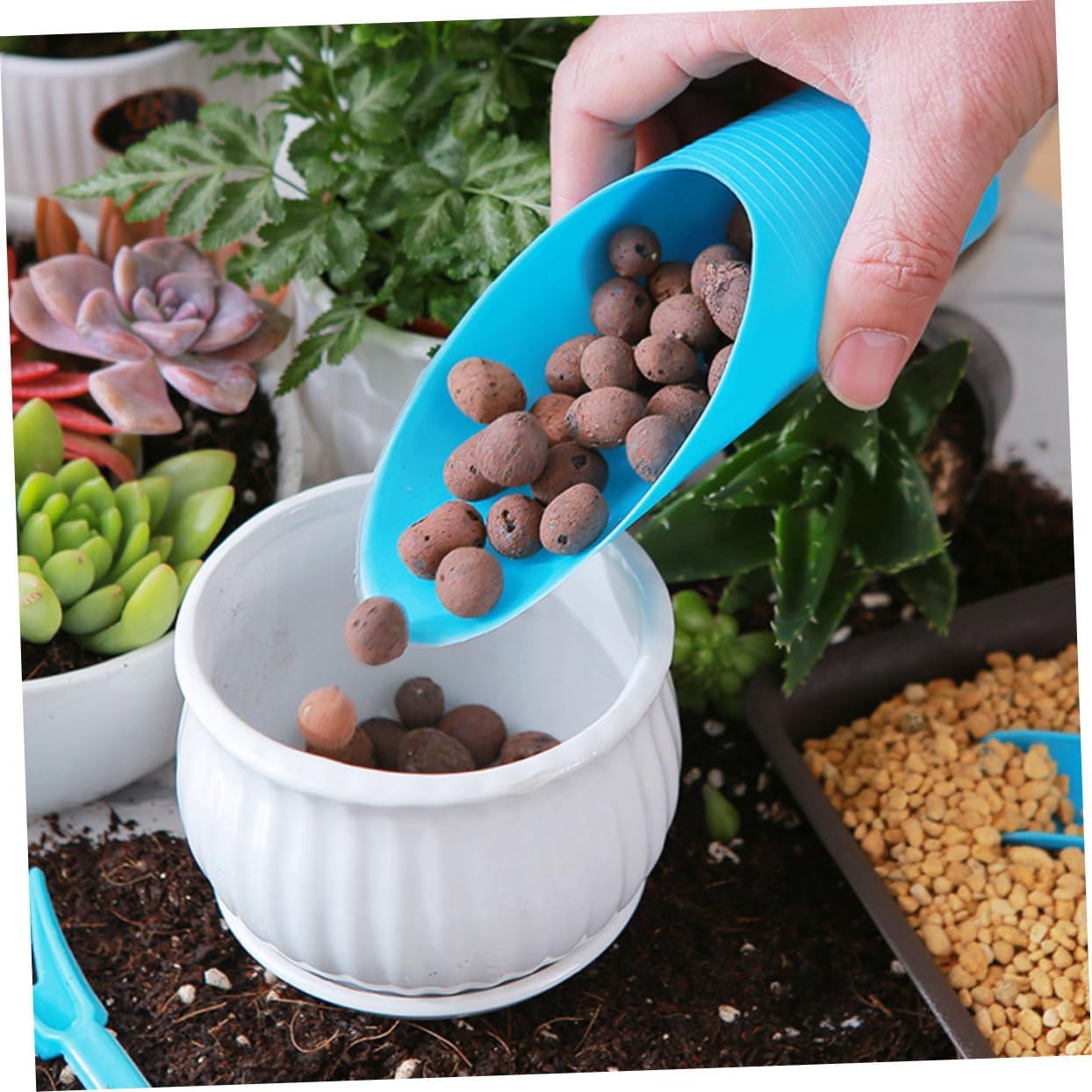 Strumento per piantare piante succulente: un set di strumenti da giardinaggio per piantare piante succulente, tra cui uno strumento per il trapianto di piantine, una perforatrice, una paletta per il terreno, una pala e una spazzola per la pulizia, strumento coltivatore Strumento per piantare i bulbi: il set è facile da usare e perfetto per tutte le tue esigenze di giardinaggio, strumento per la cura dei fiori Strumenti per il trapianto: realizzati con materiali resistenti e duraturi, garantiscono un ottimo investimento Kit di attrezzi da giardino: questo set di accessori da giardinaggio include uno strumento per il trapianto di piantine, una perforatrice, una paletta per il terreno, una pala e una spazzola per la pulizia, strumento per la piantagione Attrezzi da giardinaggio: le dimensioni compatte di questo set di accessori da giardinaggio lo rendono perfetto per piccoli spazi e facile da riporre, attrezzi per piante grasse