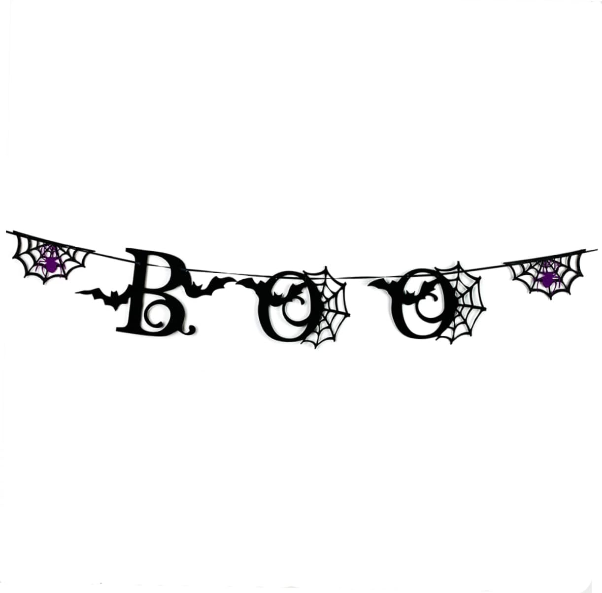 Ghirlanda di Halloween - Questo striscione di Halloween a tema ragno chic e unico porterà la tua famiglia e i tuoi amici in un'atmosfera festosa! Banner creativo: il nostro fantastico banner perfetto per la decorazione della festa di Halloween. Decorazione di Halloween: può essere utilizzata all'interno e all'esterno, molto pratica. Banner di Halloween: aggiungi un'atmosfera perfetta alla tua festa in costume. Ghirlanda di Halloween, gagliardetto di pipistrello: il design nero sembra ancora più spaventoso.