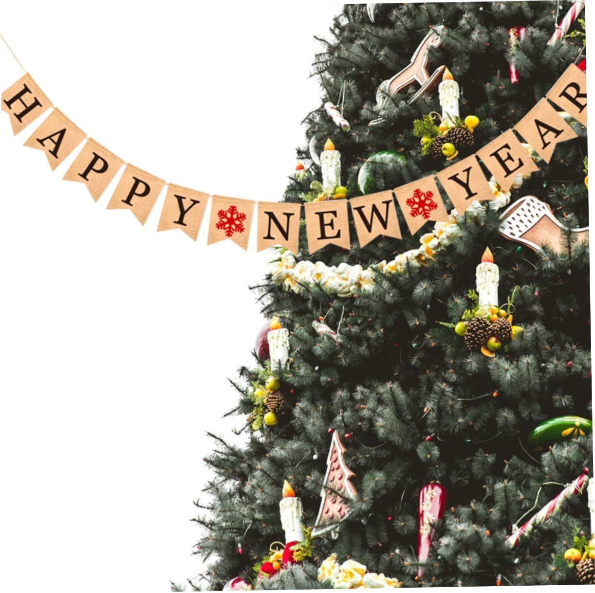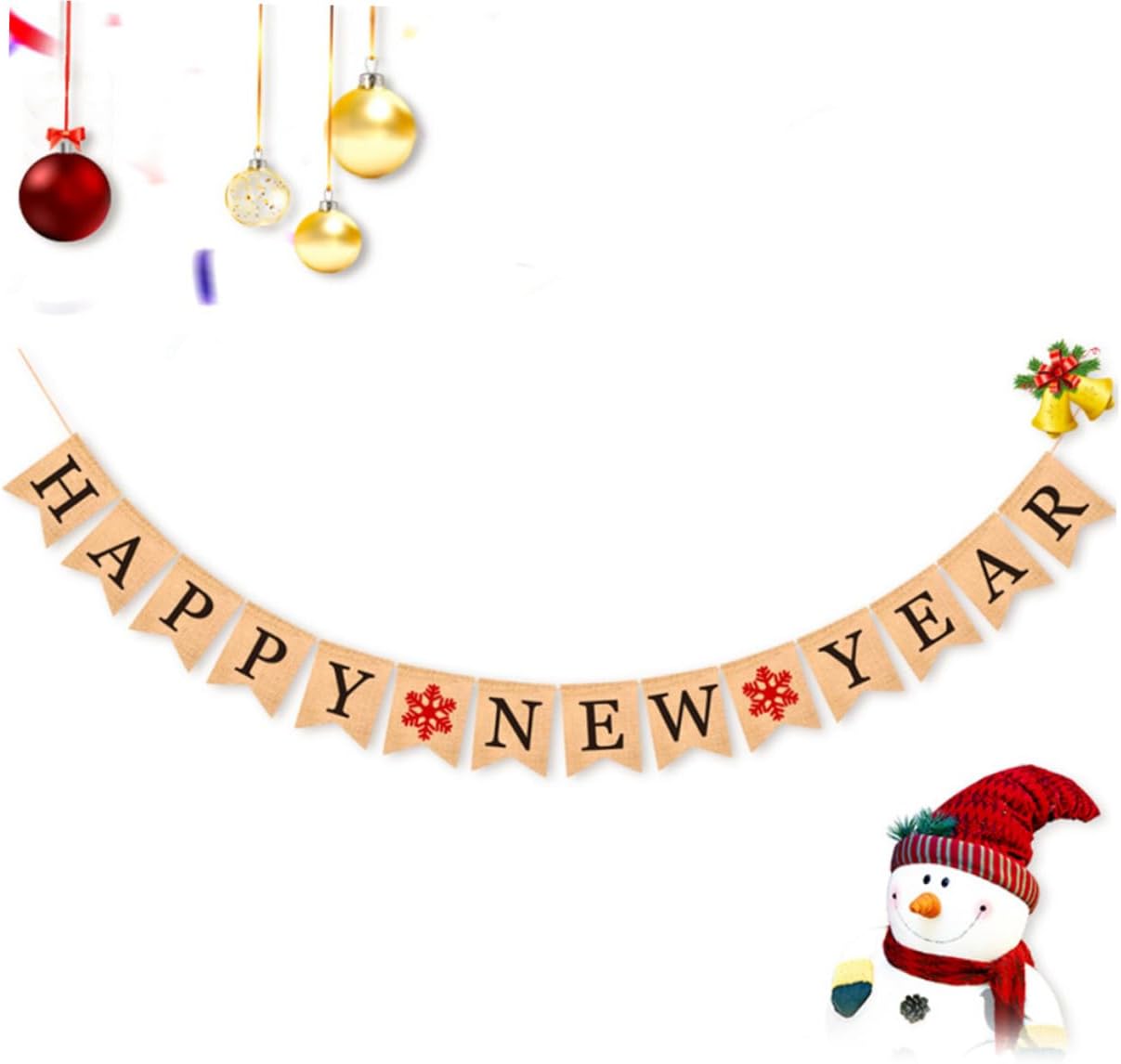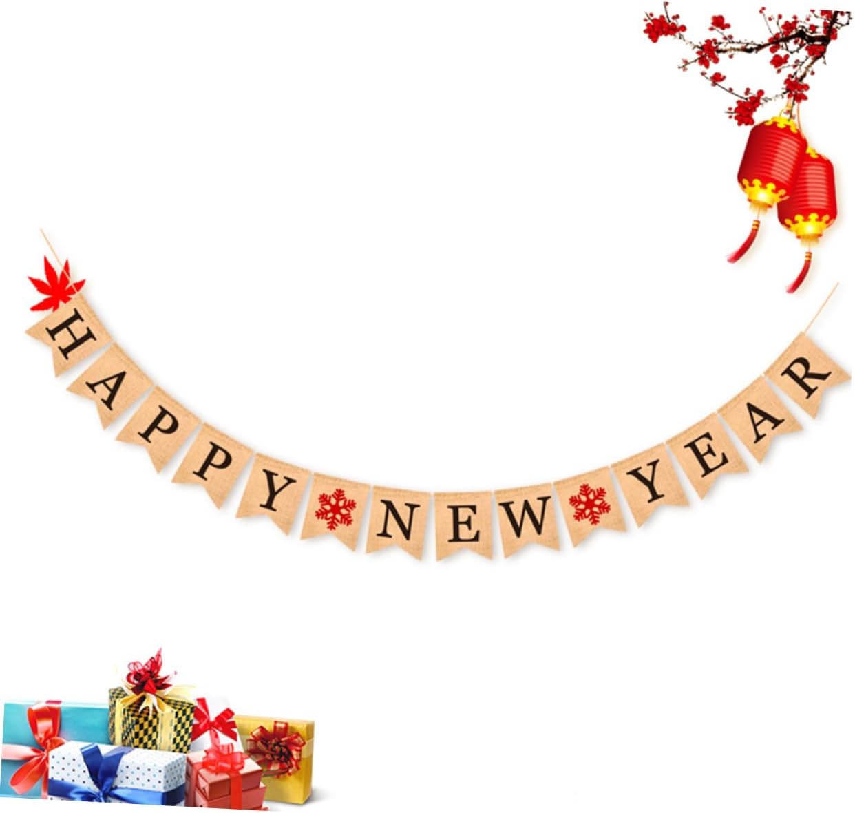 Banner in tessuto da appendere: dotato di cordino, puoi assemblarlo facilmente per creare il tuo banner. Decorazioni in tessuto sospese: lo striscione Happy New Year è perfetto per le feste di Capodanno o Natale. Banner per feste: può creare un'atmosfera divertente e festosa per dare il benvenuto a un anno. Striscione di carta: rimuovi gli stendardi dalla carta perforata, posiziona lo spago nei fori preforati e appendi. creare striscioni per feste speciali e innovativi.