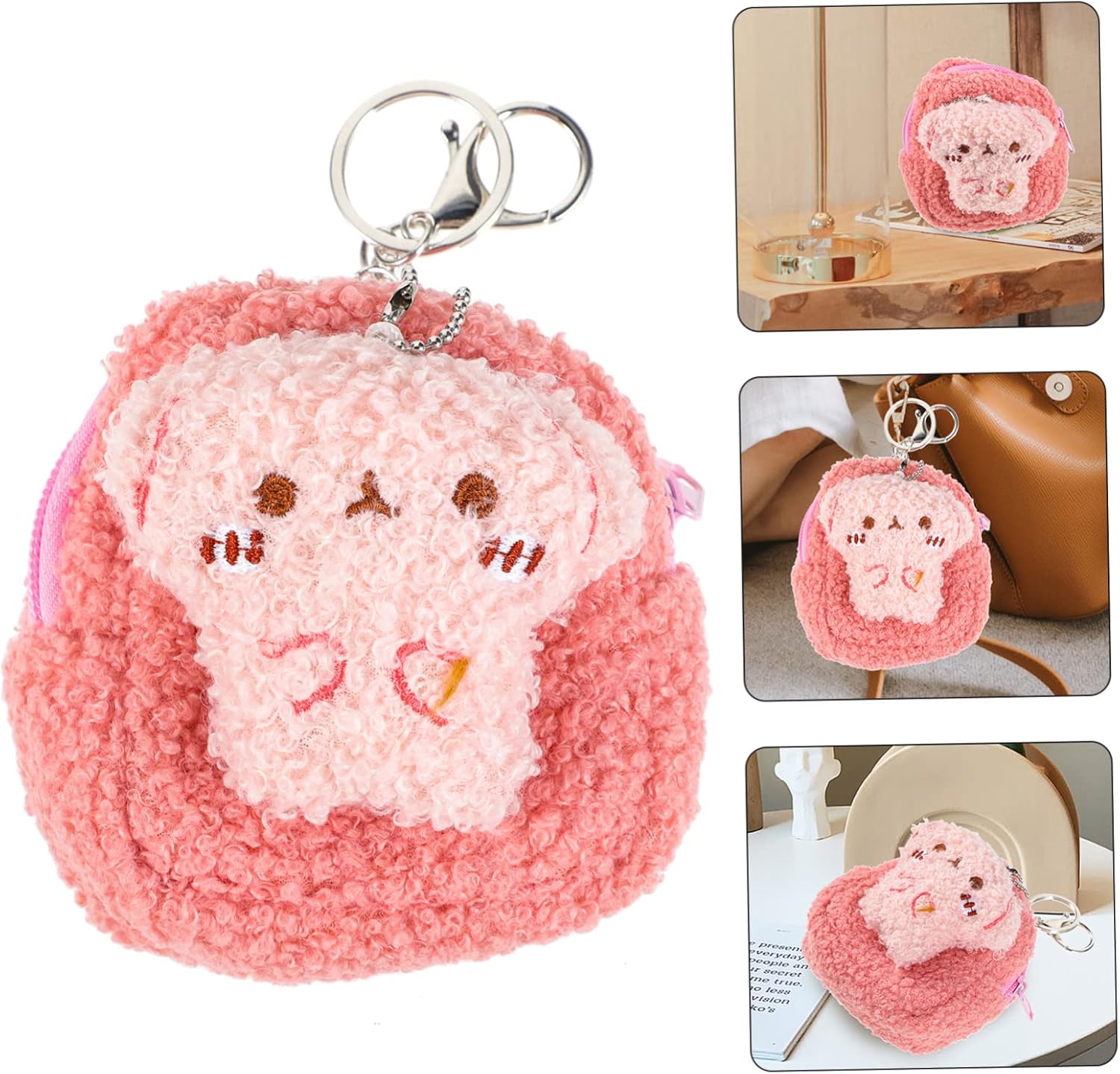Portafoglio per donna: 🧸🧸🧸 mini portamonete in peluche portafoglio orsetto cartone animato borsa per contanti borsa per telefono sacchetti per carte carino piccolo portamonete con cerniera borse novità con portachiavi per donne e ragazze capacità sufficiente per riporre spiccioli, , piccole carte, rossetto, Kit trucco per bambini: forma di cartone animato, design raffinato e apertura e con cerniera ad anello rotondo. Simpatico borsellino mini: capacità sufficiente per riporre spiccioli, , piccole carte, rossetto, ecc. Borsette per bambini: versatili e possono essere utilizzate ciondolo per borsa e portachiavi. Borsa per il trucco da viaggio: può contenere , chiavi, cosmetici, carte e altri piccoli oggetti.