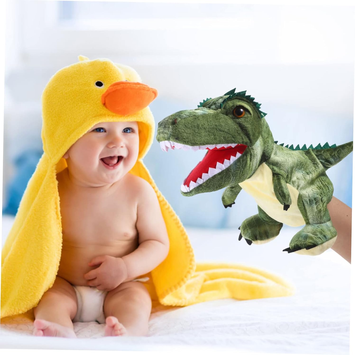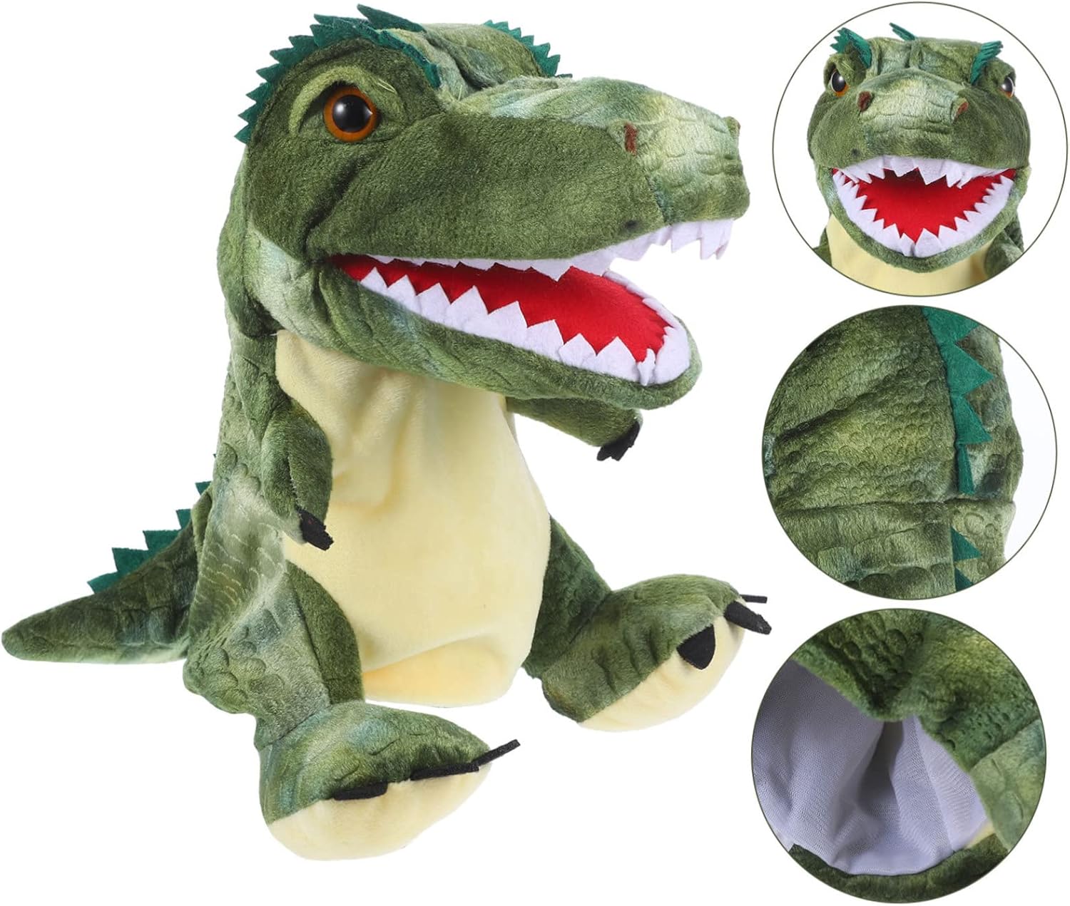 Burattino da mano per bambini: il burattino creativo di dinosauro può migliorare e sviluppare l'immaginazione dei bambini, molto gioioso da giocare. Giocattolo decorativo per burattini a mano: il burattino a mano per animali può stimolare il senso del tatto e la coordinazione tra mano e cervello del bambino. Giocattolo educativo del dinosauro: forma di animale, adorabile, un bel regalo per amici e familiari. aumentare l'interazione con il bambino, migliorare il rapporto tra genitori e bambino. Marionetta da mano per raccontare storie: i suoi dipinti dettagliati e le sue posture danno l'impressione che la statuetta sia animata. Burattino a mano narrativo: lascia che i bambini sappiano di più sui dinosauri, il burattino a mano con animali dei cartoni animati è molto divertente da giocare.