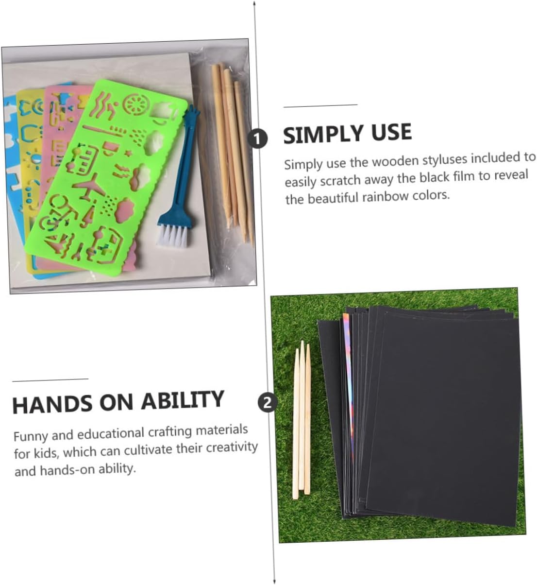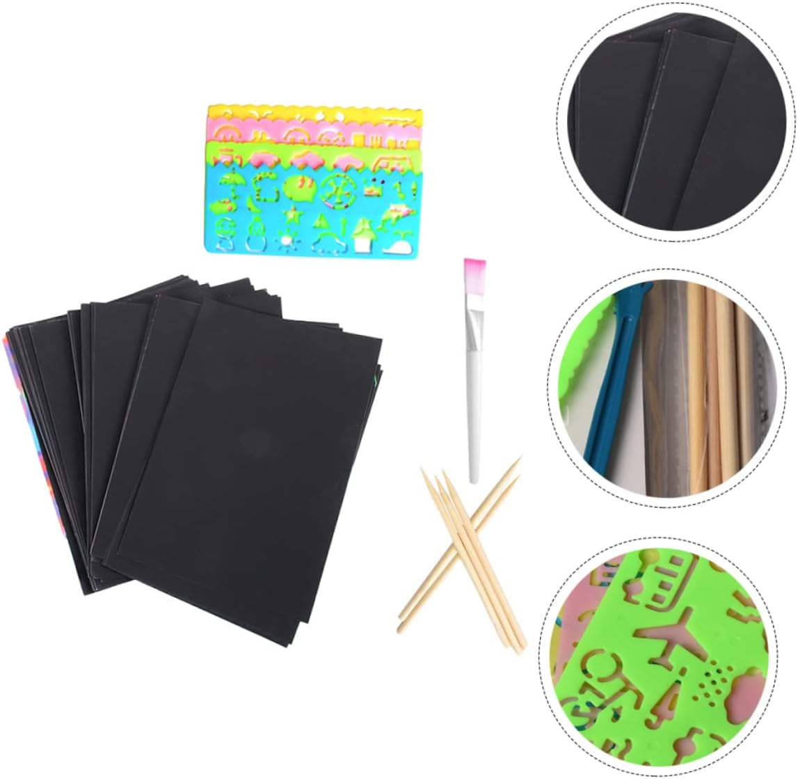 Per: ottimo per progetti di bricolage, feste, campeggi, giornate di divertimento in famiglia, progetti scolastici, lezioni d'arte e attività creative in classe, gratta e vinci disegni con la carta Carta antigraffio: realizzata in carta spessa e di con superficie rivestita di nero, i bastoncini antigraffio sono realizzati in legno, sicuri e non facili da sbiadire e deformare, carta antigraffio nera Gratta e artigianato artistico: il kit artistico da grattare può aumentare le capacità di visualizzazione e la creatività dei bambini, carta da grattare nera Carta antigraffio nera: gratta direttamente la superficie della carta nera con lo stilo in legno per rivelare gli incredibili motivi colorati sottostanti, gratta via i lavori artistici Gratta e vinci: puoi creare i tuoi disegni su carta da grattare e trasformare colori interessanti in immagini fantasiose, carta da grattare nera