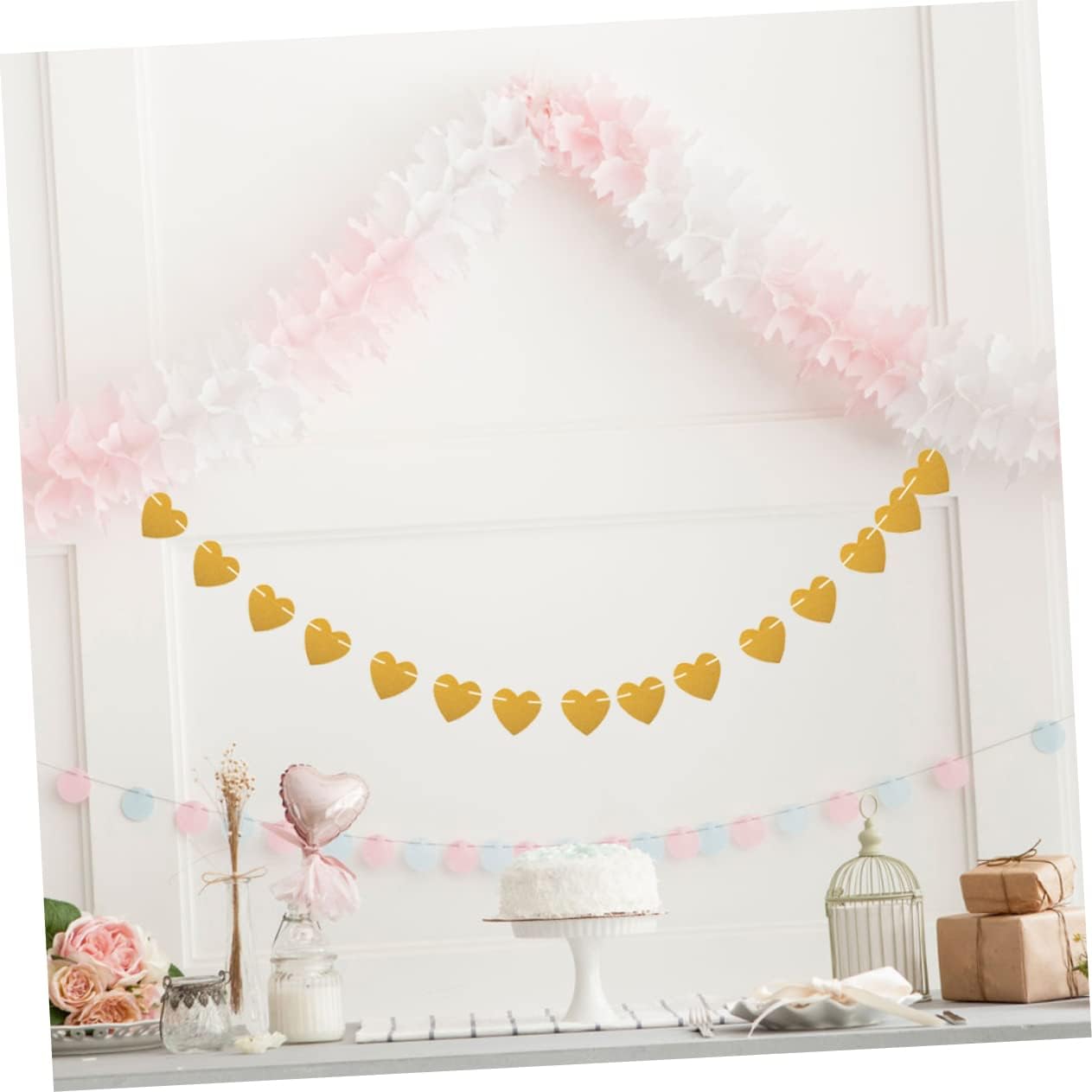 Ghirlanda nuziale: questa ghirlanda dorata con glitter è realizzata in carta resistente di alta qualità, nessun glitter cade e brilla. Stendardo - Uno sfondo fantastico per un buffet o un tavolo da dessert, uno sfondo drammatico per alcune foto. Banner a forma di cuore per baby shower: uno sfondo fantastico per un buffet di dolci o un tavolo da dessert, uno sfondo drammatico per alcune foto. Decorazione di nozze: puoi utilizzare questa ghirlanda ovunque per creare un ambiente divertente e festoso per la tua prossima festa o evento di Natale. Decorazione dorata: la splendida ghirlanda glitter dorata è lunga ed è perfetta per aggiungere un tocco di brillantezza ad ogni occasione.