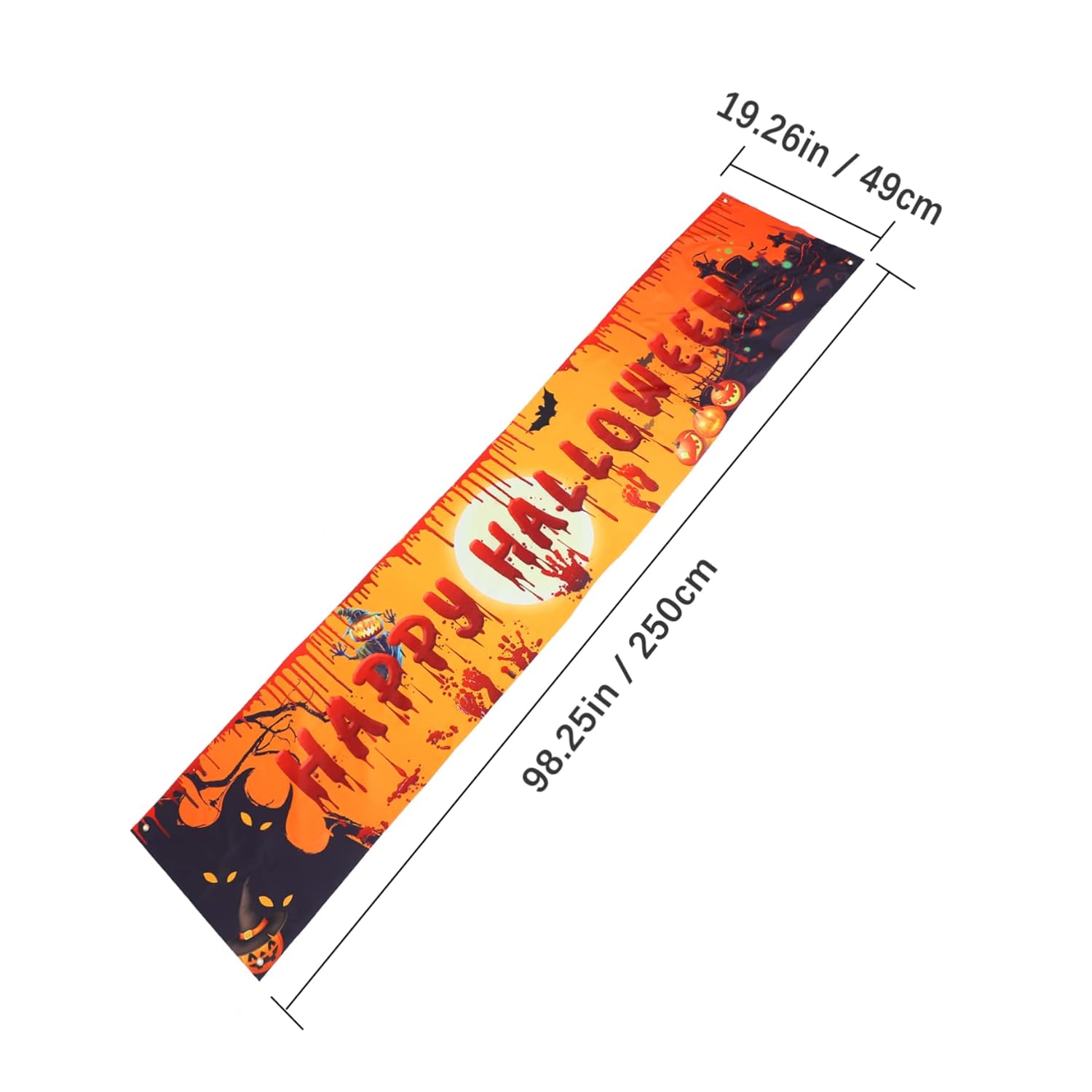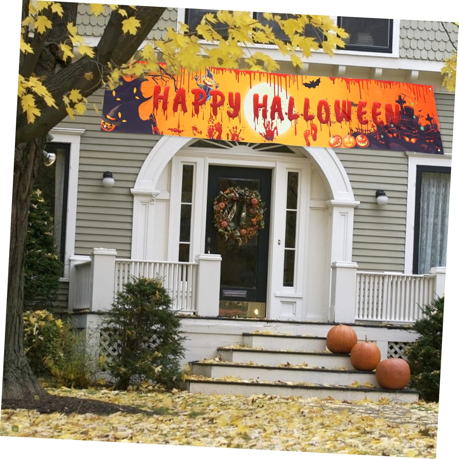 Decorazione di Halloween - dai un aspetto rinfrescante e crea un'atmosfera festosa, banner di Halloween Ghirlanda per feste di Halloween - adatta a diversi scenari: il design è adatto per la maggior parte dei luoghi, come corridoio, muro, recinzione, porta ecc. Decorazioni per la porta d'ingresso di Halloween Banner di carta per feste - classica stampa di Halloween felice, è il tuo per Halloween e banner da giardino di Halloween Bandierine di Halloween - Decorazione facile da usare, rimovibile e meravigliosa per Halloween, decorazioni per esterni Banner spaventoso - Il prodotto è realizzato in materiale poliestere, che è molto resistente all'usura e può essere utilizzato a lungo come decorazione esterna