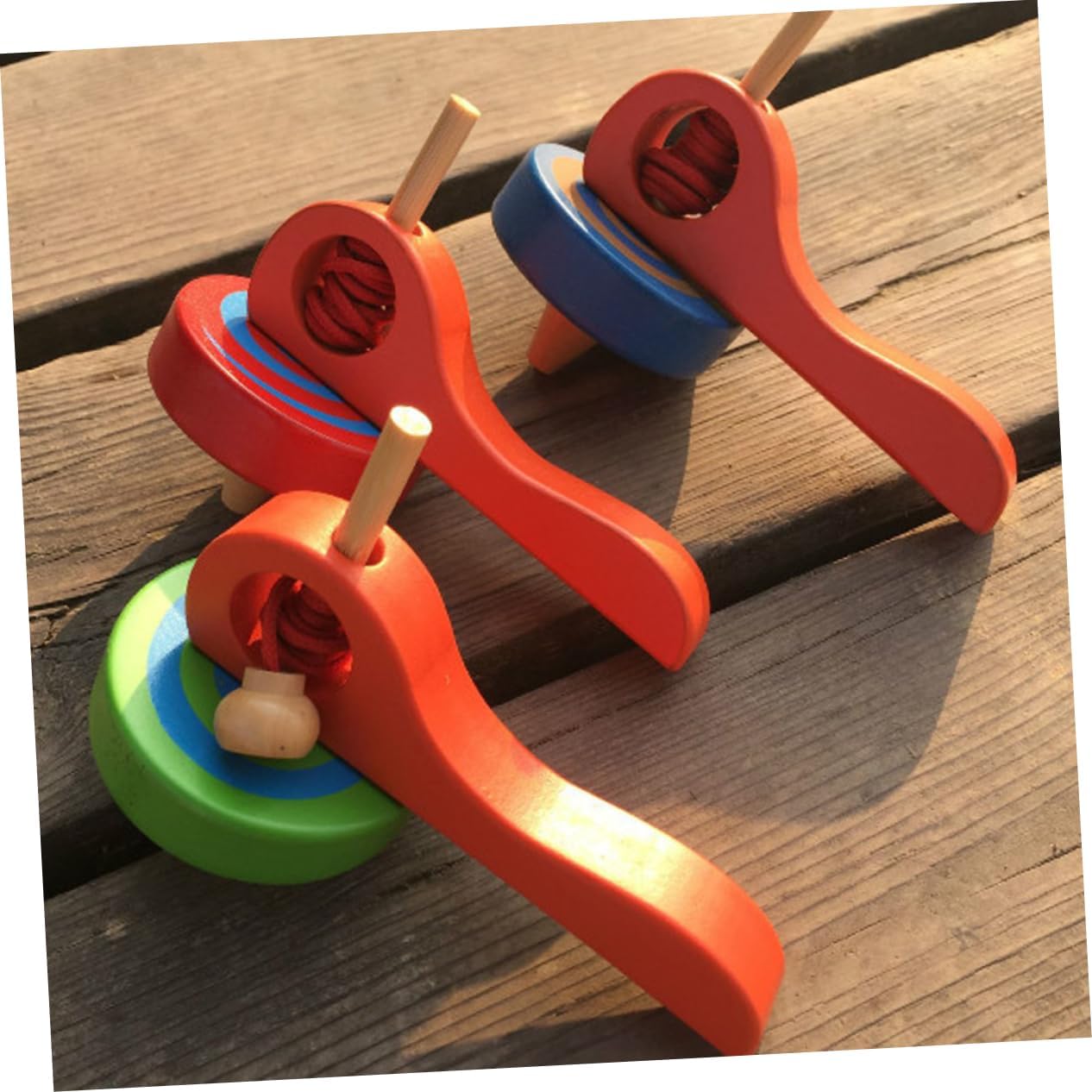 Giocattolo: aiuta ad esercitare la cognizione dei bambini e la coordinazione occhio-mano. superiore in legno: stimola la capacità di pensiero e la creatività dei bambini. Piani in legno con lanciatore: giocattoli perfetti per rilasciare le pressioni e godersi il tempo libero, adatti sia a bambini che ad adulti. Gioco: viene fornito con un lanciatore di legno. basta installarlo sul lanciatore ed estrarre la corda di avvolgimento, girerà sul terreno. Giocattoli: realizzati in materiale di legno di qualità, vernice ad acqua, non irritante, durevole e sicuro per l'uso.