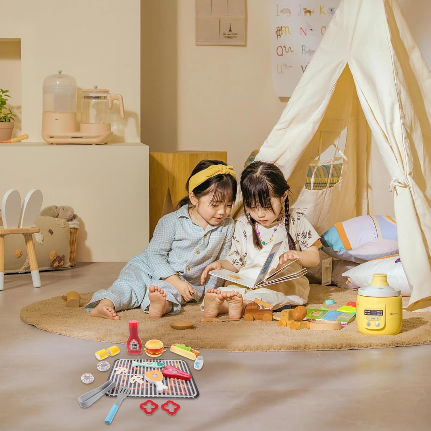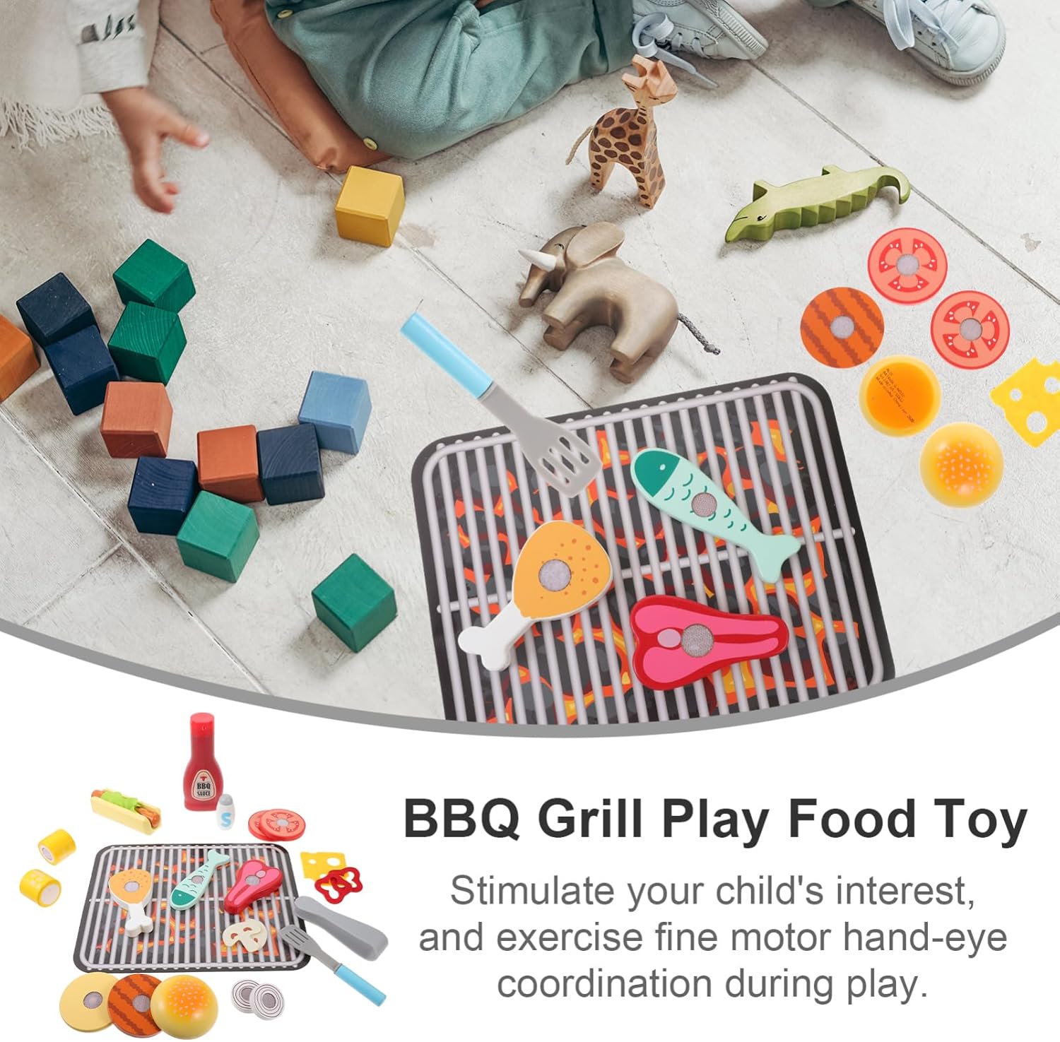 Cibo giocattolo: scene realistiche che possono creare un momento di gioco per divertirsi, allenare la flessibilità delle da soli, cucinare Cibo da taglio in legno per aumentare il rapporto genitori-figli e l'amicizia con questo set di simulazione di cibo da taglio in legno Taglio del legno -- ottimo gioco di finzione alimentare per in età prescolare, ragazzi, sopra i 3 anni, finzione Cucina - la consistenza è molto densa, dura, portante, non facile da rompere e molto delicata nella mano, cognitiva Alimentare: promuove la coordinazione occhio-mano, le capacità motorie fini, l'immaginazione e la creatività, coesiste con divertimento e istruzione, griglia a legna
