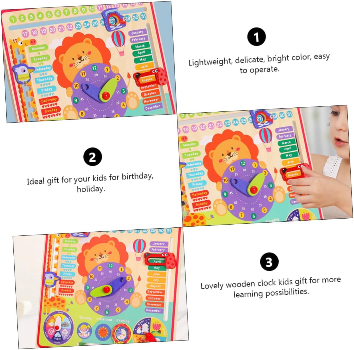 Cognitivo: l'orologio è fatto di materiale, è per un uso a lungo termine, orologio Abbinamento mensile: leggero, delicato, brillante, facile da usare, orologio in legno Abbinamento meteorologico: divertente, educativo, aiuta l'intelletto, il concetto e coltiva l'interesse, questa è una meravigliosa educazione precoce, un giocattolo educativo Orologio tutto in : gioca con i tuoi e promuovi i sentimenti tra i genitori e con il nostro orologio interattivo Educativo per l'apprendimento precoce: il è stupendo, attirerà l'attenzione e gli piacerà, ordinando l'orologio
