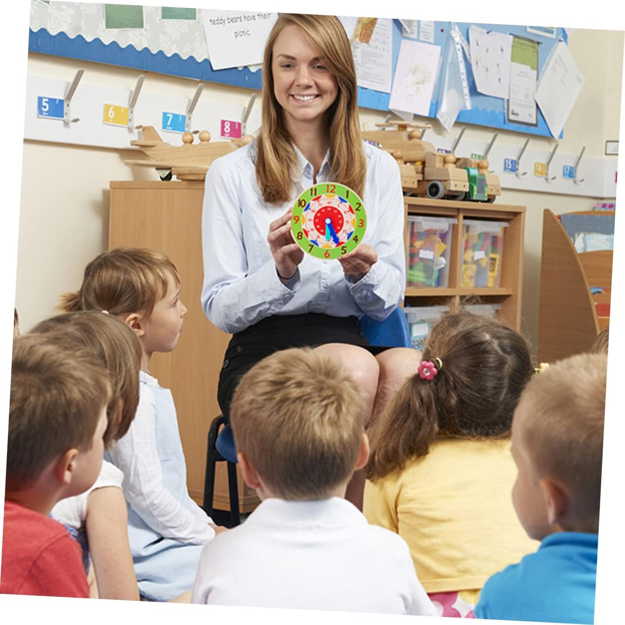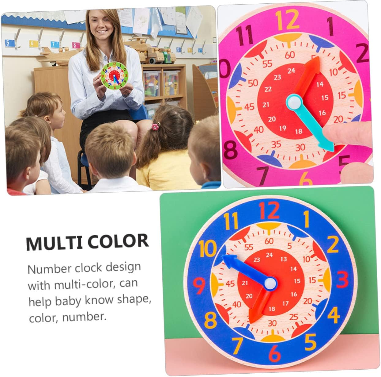 Realizzato in legno di legno e materiale plastico, è rispettoso dell'ambiente e sicuro per i bambini che giocano. Numero orologio Design con multicolore, può aiutare a conoscere la forma, il , il numero. Il giocattolo educativo è buono per insegnare l'immaginazione dei bambini e i concetti matematici. Promuovere il coordinamento a mano, la capacità logica, l'abilità creativa, l'abilità di apprendimento. Allo stesso tempo, lascia che il bambino abbia un'idea più concettuale del tempo. Scelta del meraviglioso per bambini e amici. Un modo semplice per promuovere lo sviluppo intellettuale dei bambini.