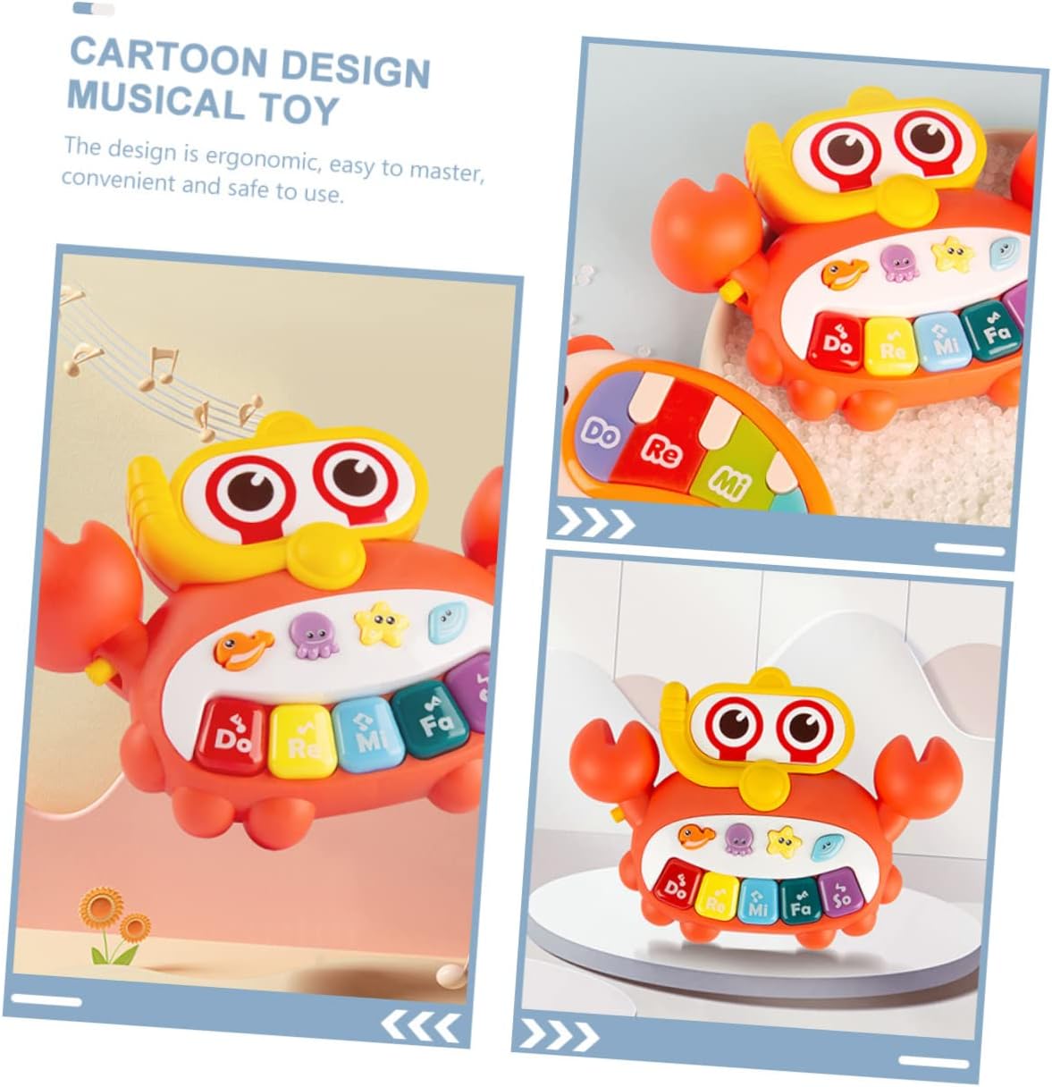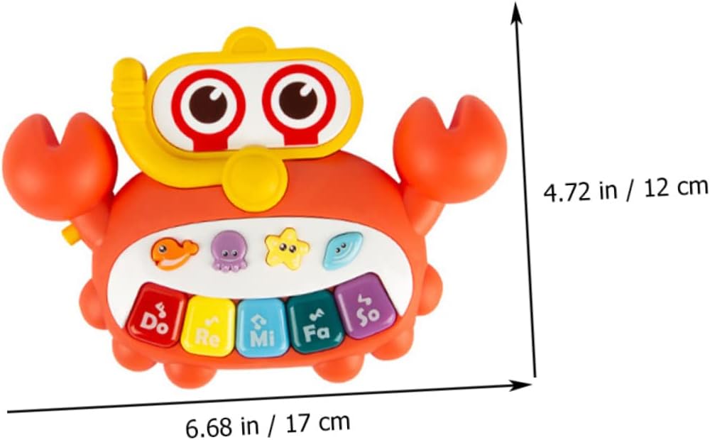 Giocattolo pianoforte interattivo: questo strumento è realizzato in materiale plastico, sano e sicuro da usare, giocattolo pianoforte per bambini Pianoforte musicale portatile: migliora la capacità di coordinazione occhio-mano e l'udito dei bambini, favorendo lo sviluppo intellettuale dei bambini, giocattolo educativo precoce Giocattolo per bambini: il giocattolo del pianoforte portatile suona per attirare l'attenzione dei bambini e allenare il loro udito, giocattolo educativo Giocattolo per pianoforte a forma di granchio: questo giocattolo creativo può aiutare a sviluppare la flessibilità e la coordinazione di e occhi, giocattoli per bambini Giocattolo musicale portatile: rafforza la cognizione dei , la cognizione della vista, l'udito e lo sviluppo della voce. il prodotto è portatile da portare con sé, piccolo giocattolo da pianoforte.
