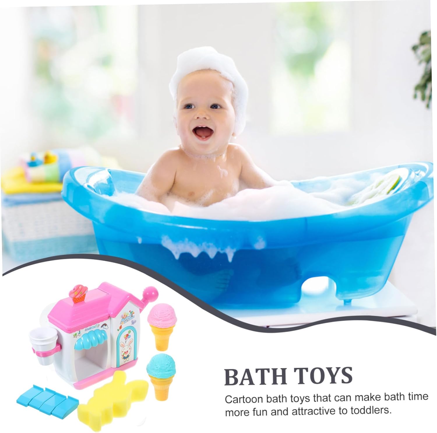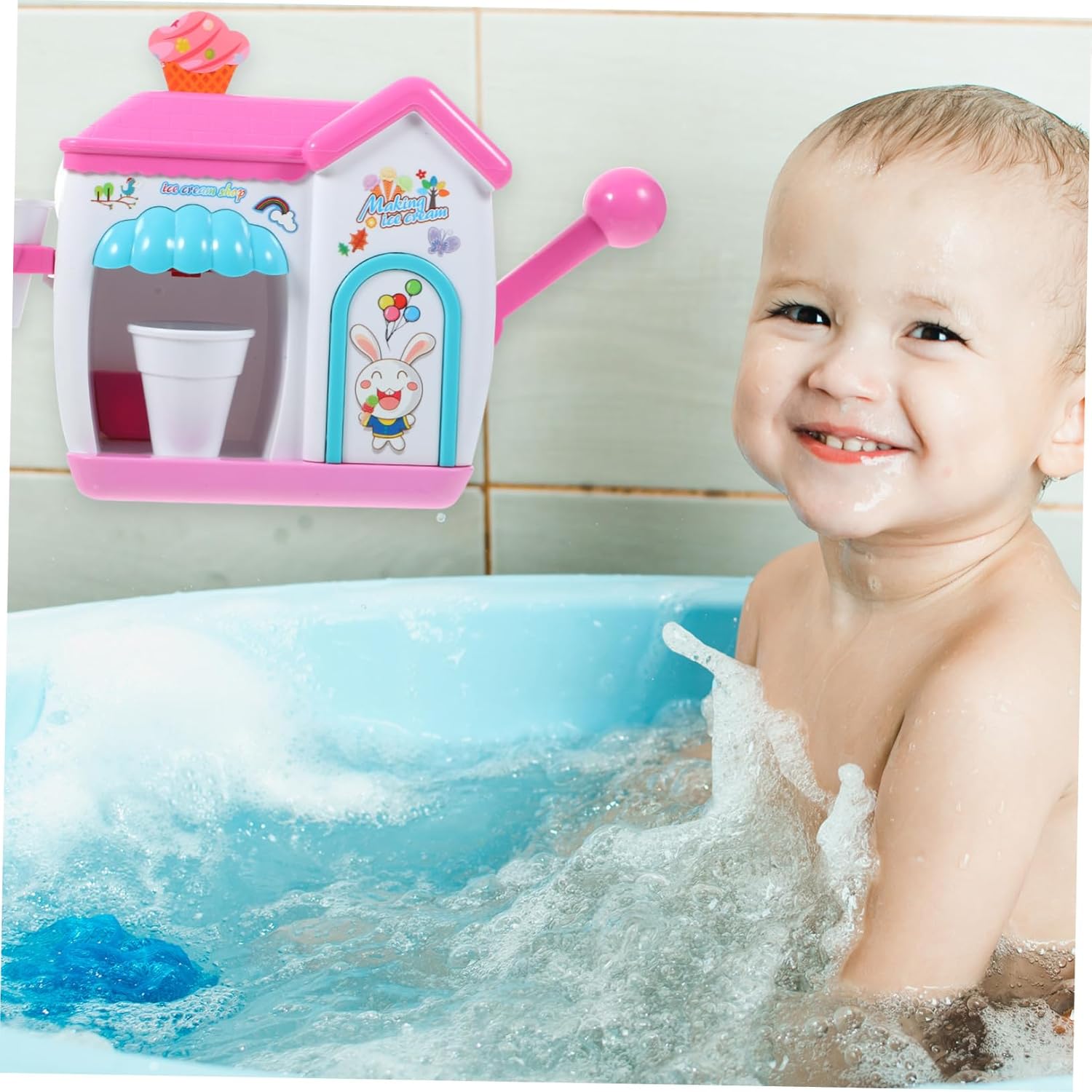 Accessori da bagno per bambini: usa il gel doccia per bambini e la mano schiumogena per creare schiuma, che è sana e sicura, un giocattolo da bagno per giocattoli da bagno: giocattoli da bagno creativi che possono rendere più divertenti e attraenti per i più piccoli, giocattoli da bagno, giocattoli da doccia: con 4 ventose sul retro, possono attaccarsi a qualsiasi superficie liscia senza preoccuparsi di cadere, giocattoli da doccia con gelato baby shower: scuoti su e giù la maniglia e escono le bolle. Macchine per bolle giocattolo per bambini: interessante e aspetto, ti piacerà molto, macchina